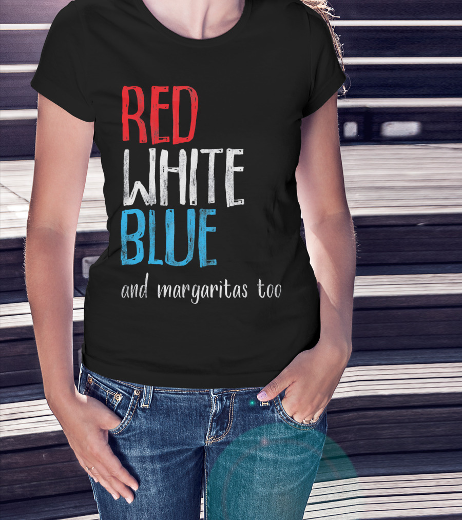 Red White Blue And Margaritas Too Patriotic American Humor T-Shirt