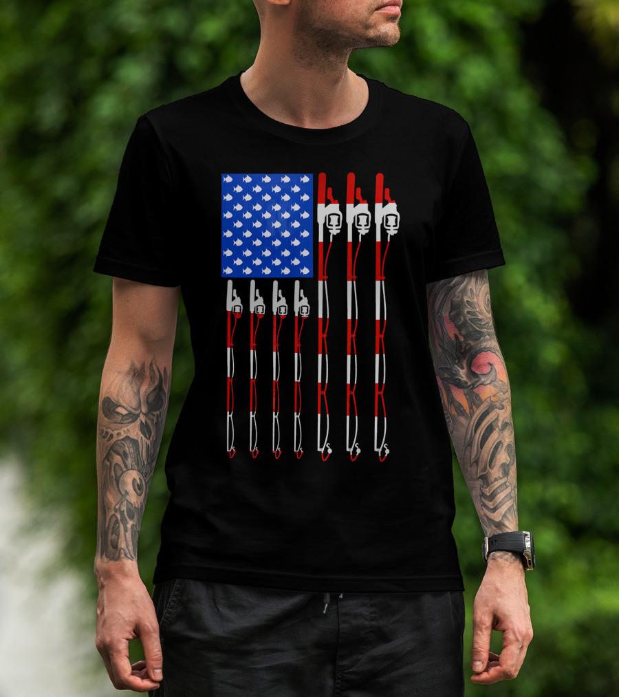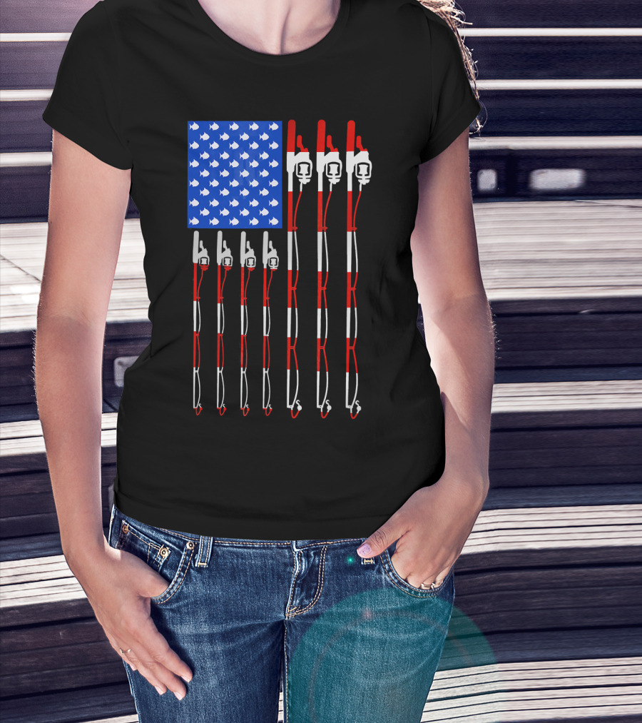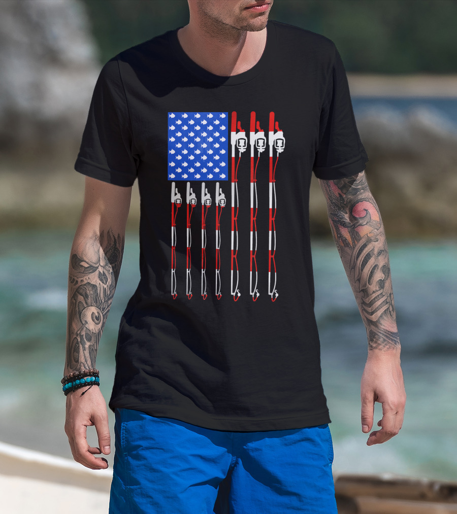 Patriotic Fishing Rod Flag Design American USA T-Shirt