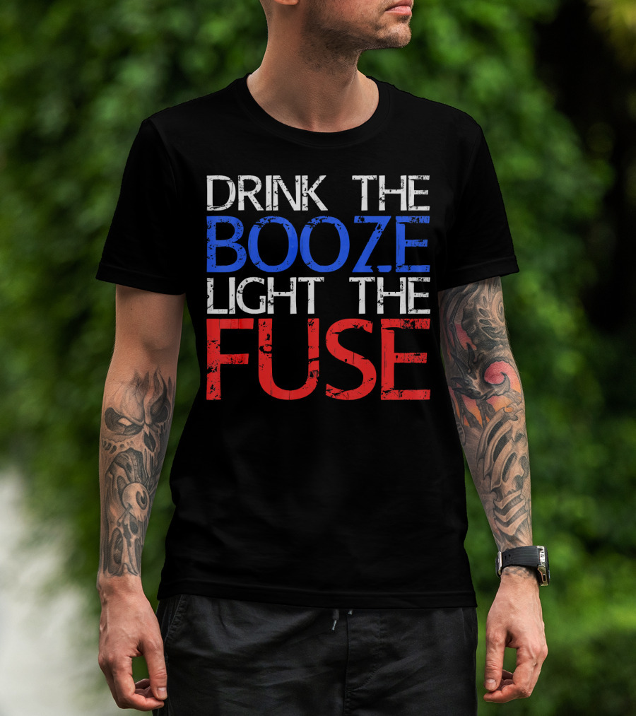 Drink The Booze Light The Fuse Patriotic Red White Blue T-Shirt
