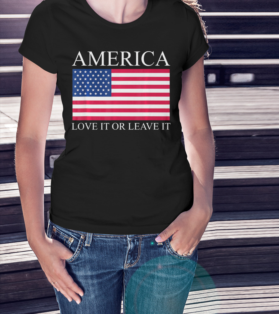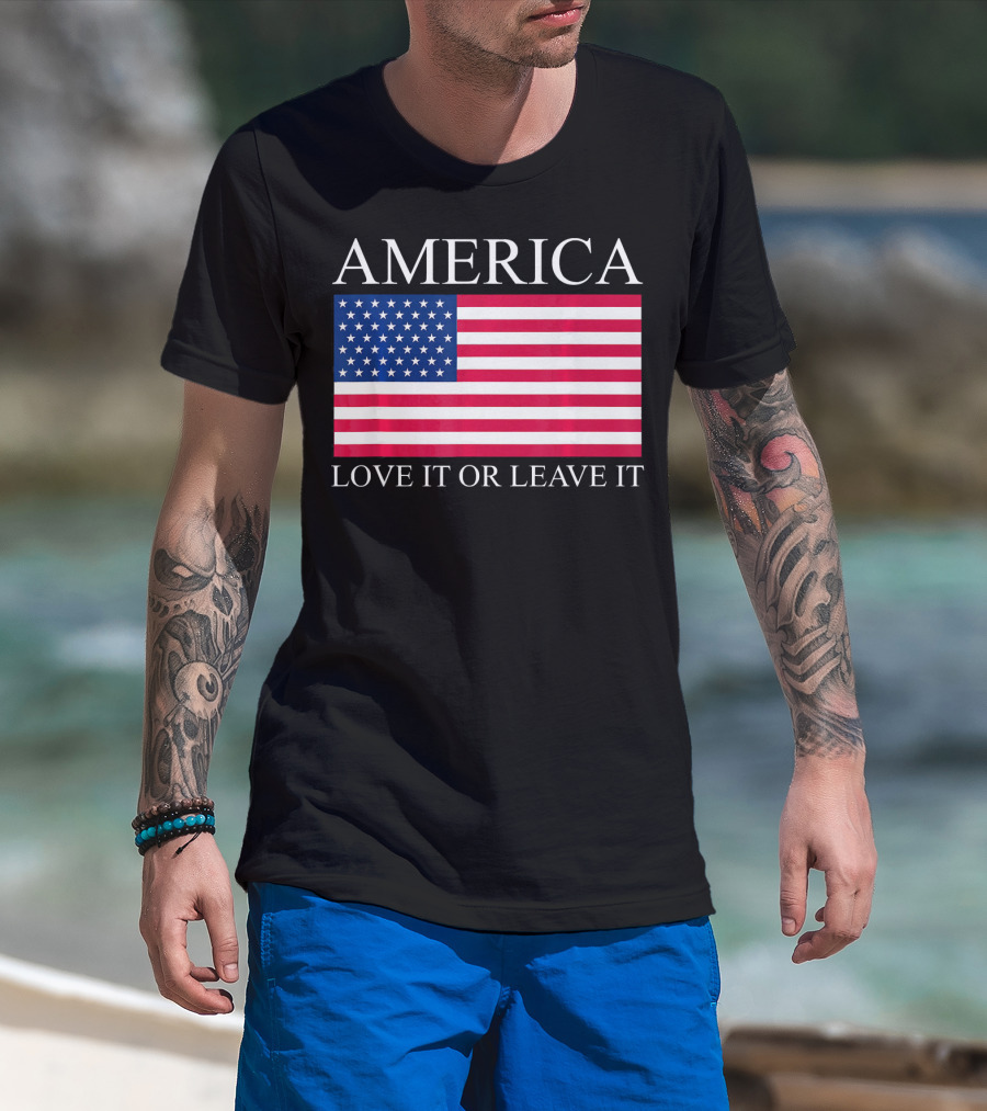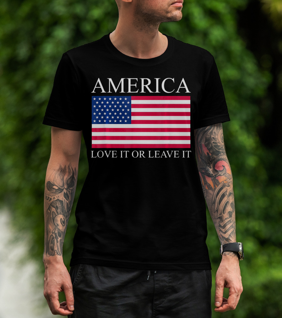 The America Love It Or Leave It USA Flag T-shirt is designed for everyday wear and a consistent fit. Fabric is pre-shrunk ring-spun cotton with durable stitching. See the size chart below for exact measurements.