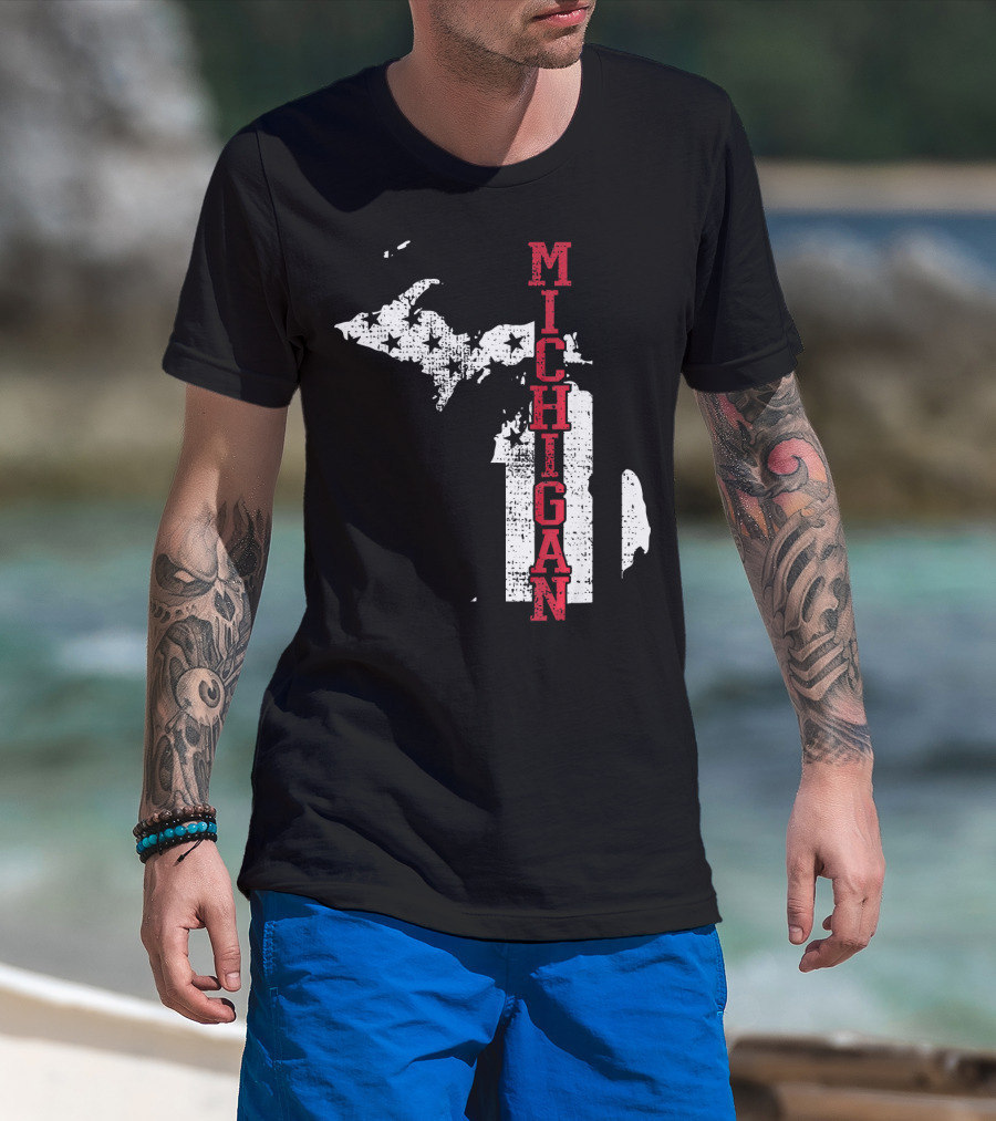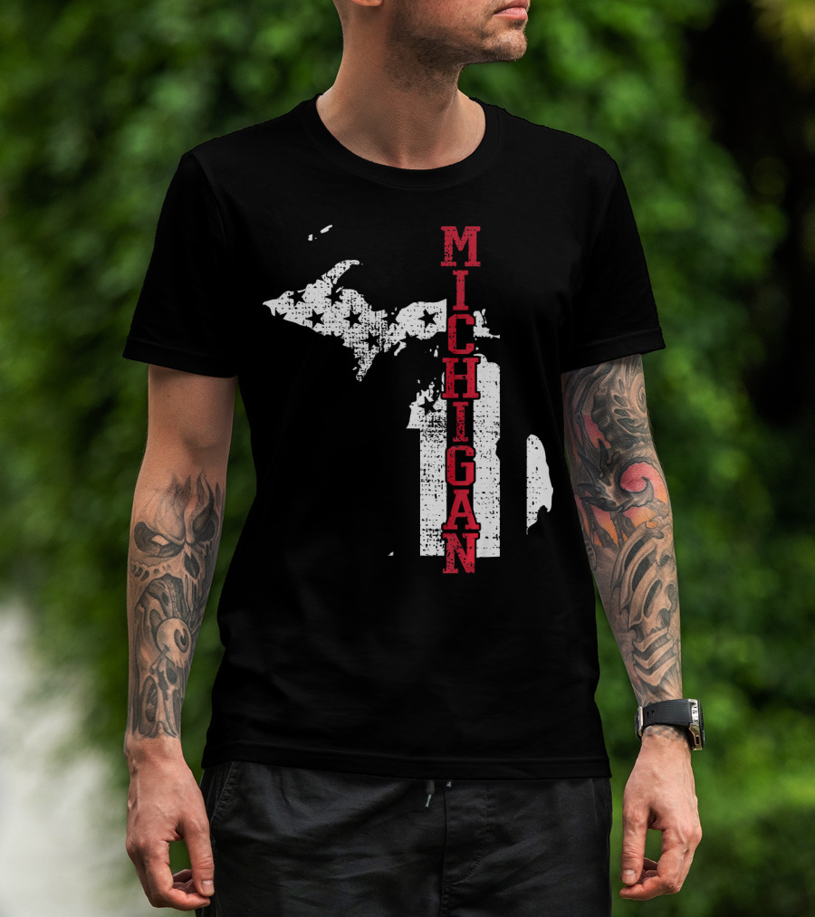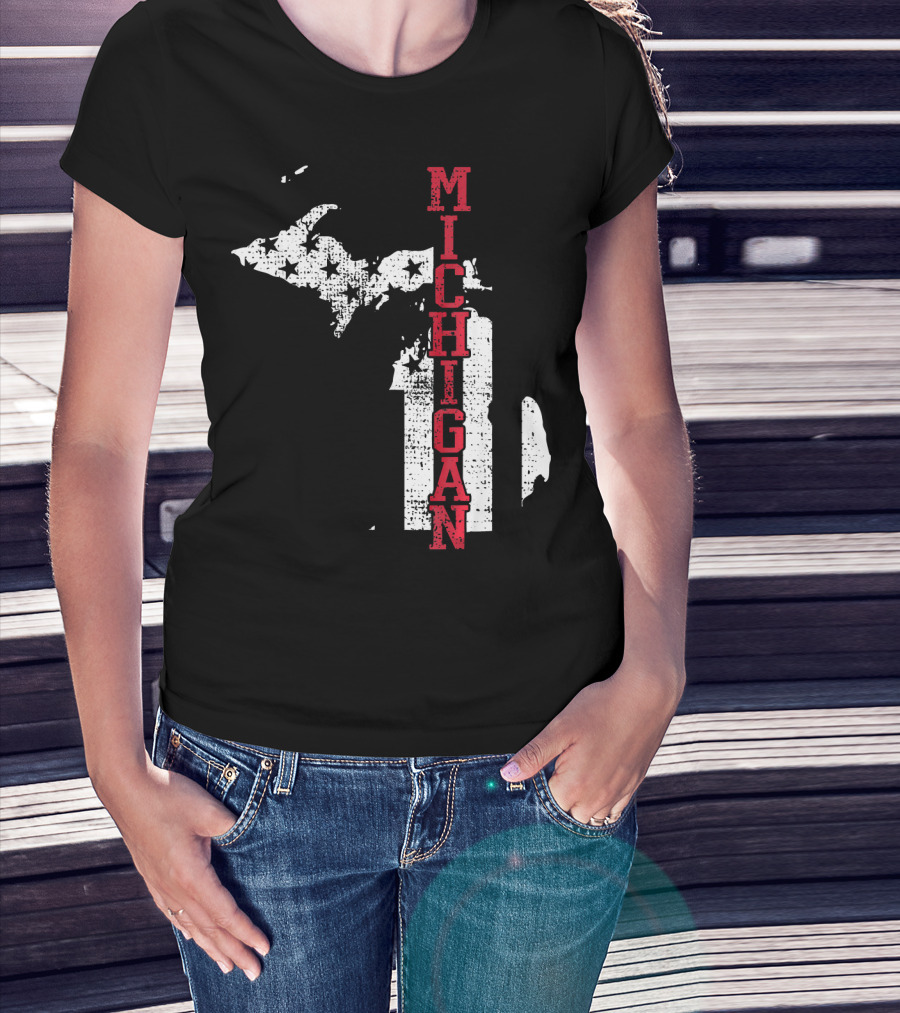 Michigan State Vintage USA Flag Patriotic Map T-Shirt