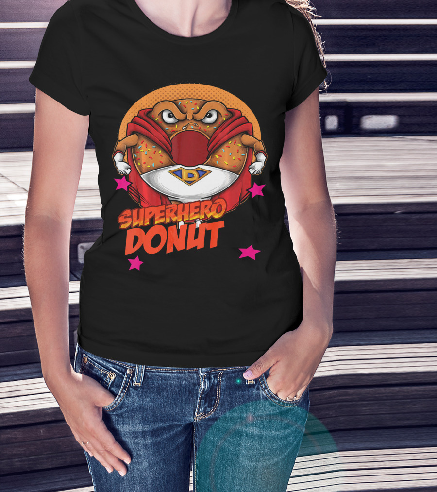 Superhero Donut I Love Donuts SuperDonut Comic Style Fun T-Shirt