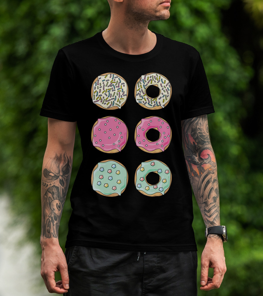 Colorful Pastel Sprinkles Donuts Pink Glaze Floral Shapes T-Shirt