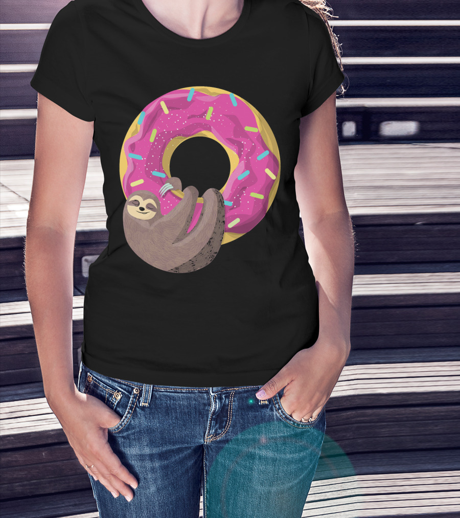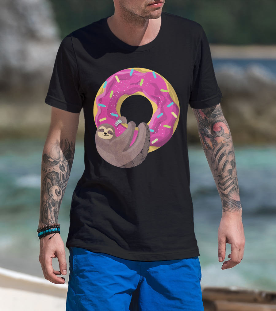 Sloth Hugging Pink Sprinkled Donut T-Shirt