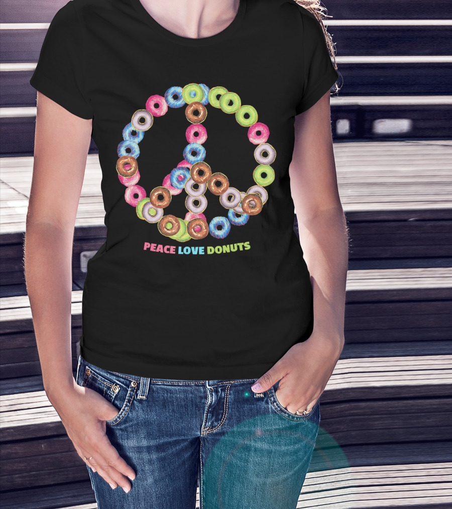 Peace Love Donuts For Bakers Pastry Doughnut Peace Sign T-Shirt