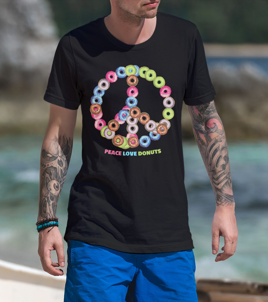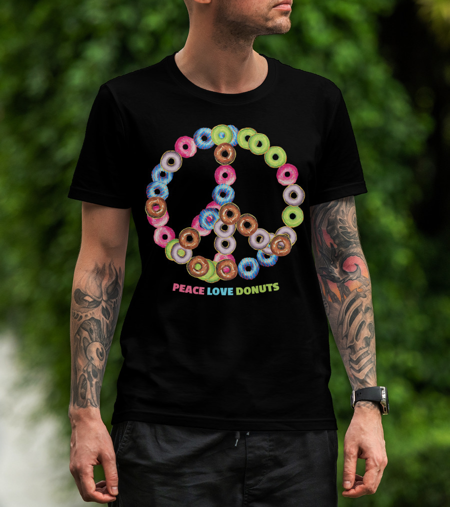 The Peace Love Donuts for Bakers Pastry Doughnut Peace Sign T-shirt is designed for everyday wear and a consistent fit. Fabric is pre-shrunk ring-spun cotton with durable stitching. See the size chart below for exact measurements.