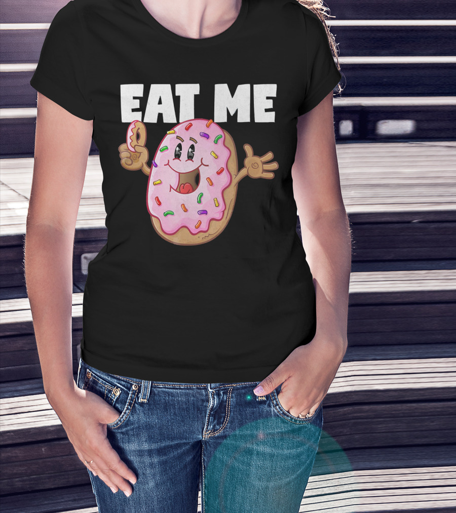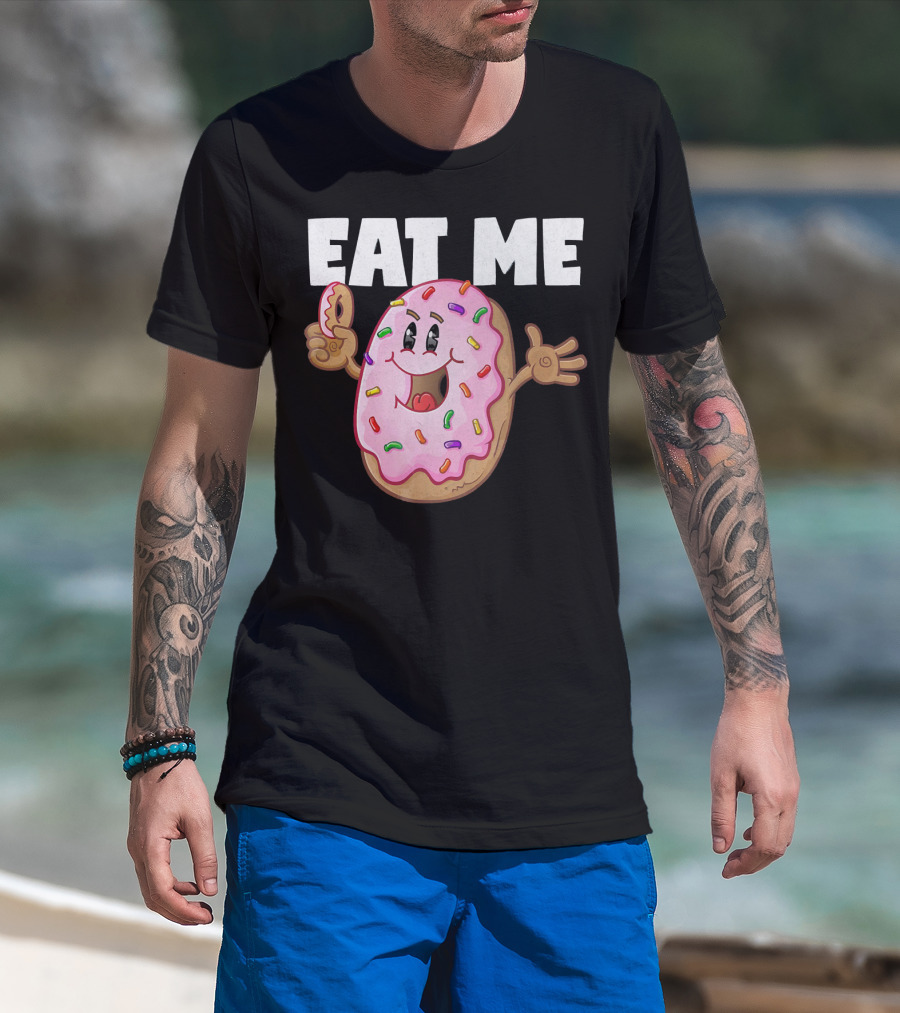 Eat Me Donuts Funny Vintage Baked Fried Sprinkles Pink Frosting T-Shirt