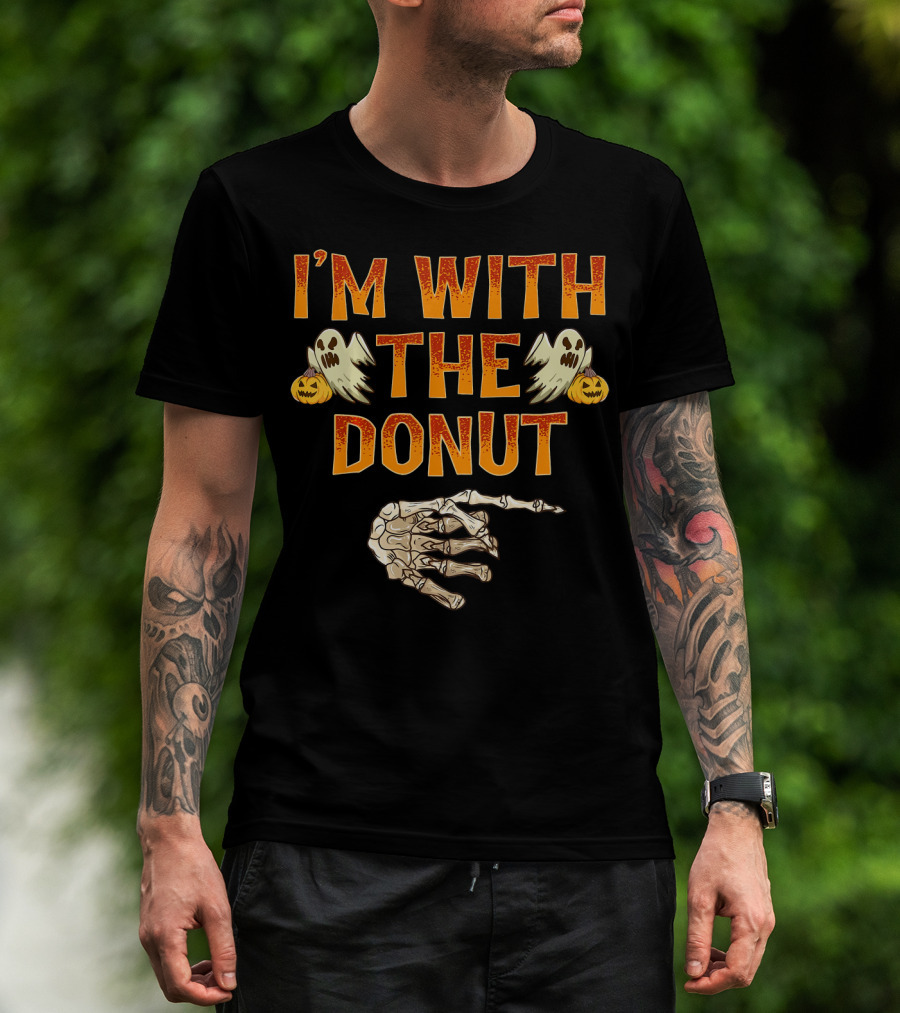 I'm With The Donut Halloween Ghosts Skeleton Hand Pumpkin T-Shirt