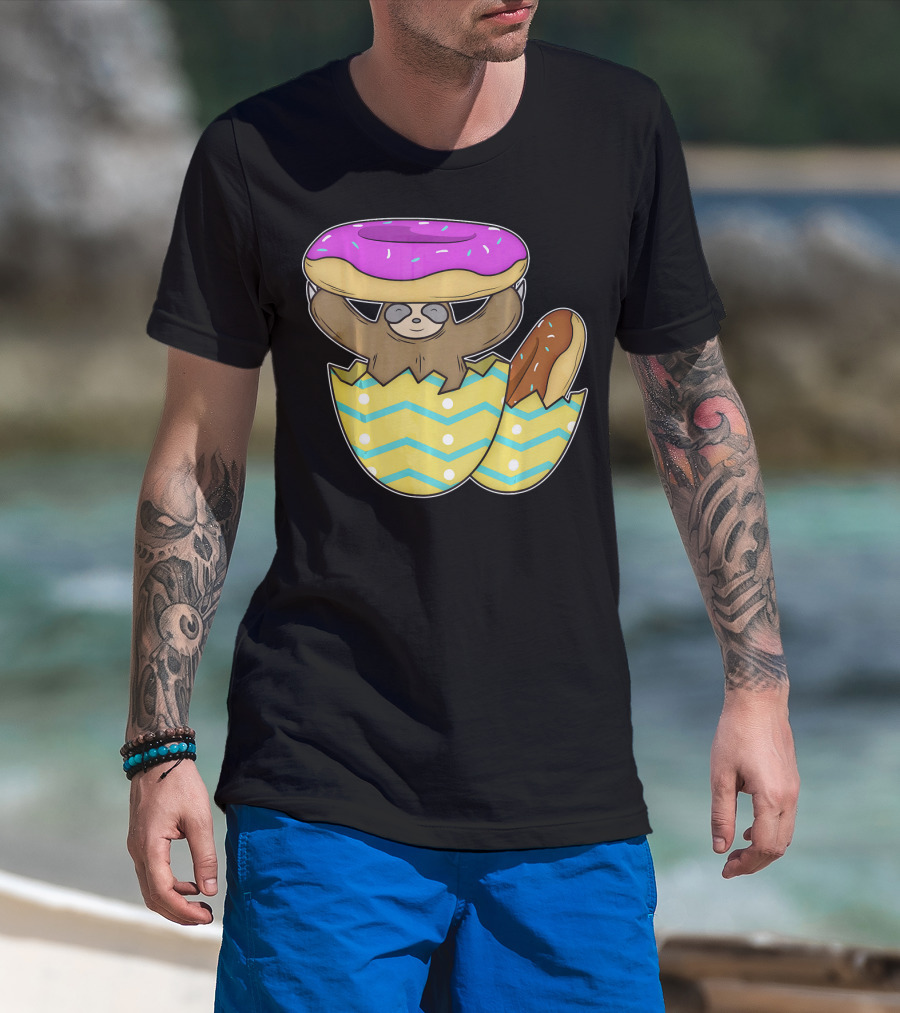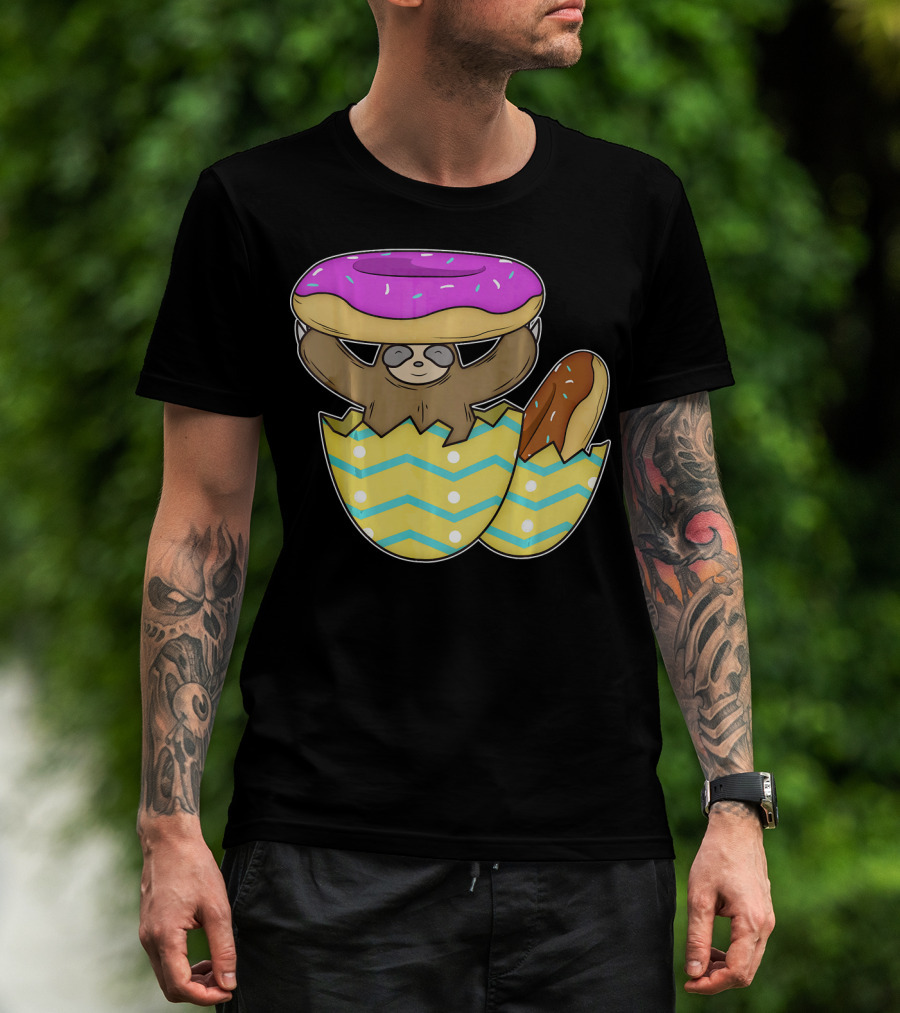 The Sloth Easter Egg With Donut Hat T-shirt is designed for everyday wear and a consistent fit. Fabric is pre-shrunk ring-spun cotton with durable stitching. See the size chart below for exact measurements.