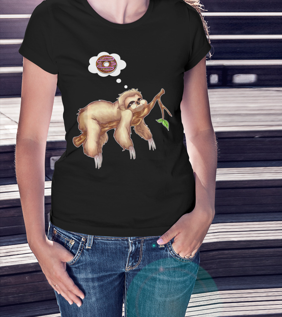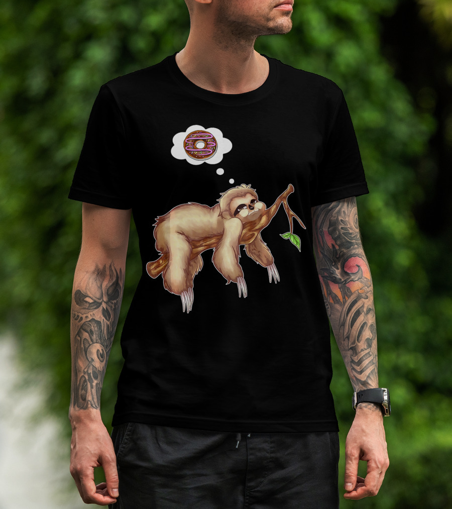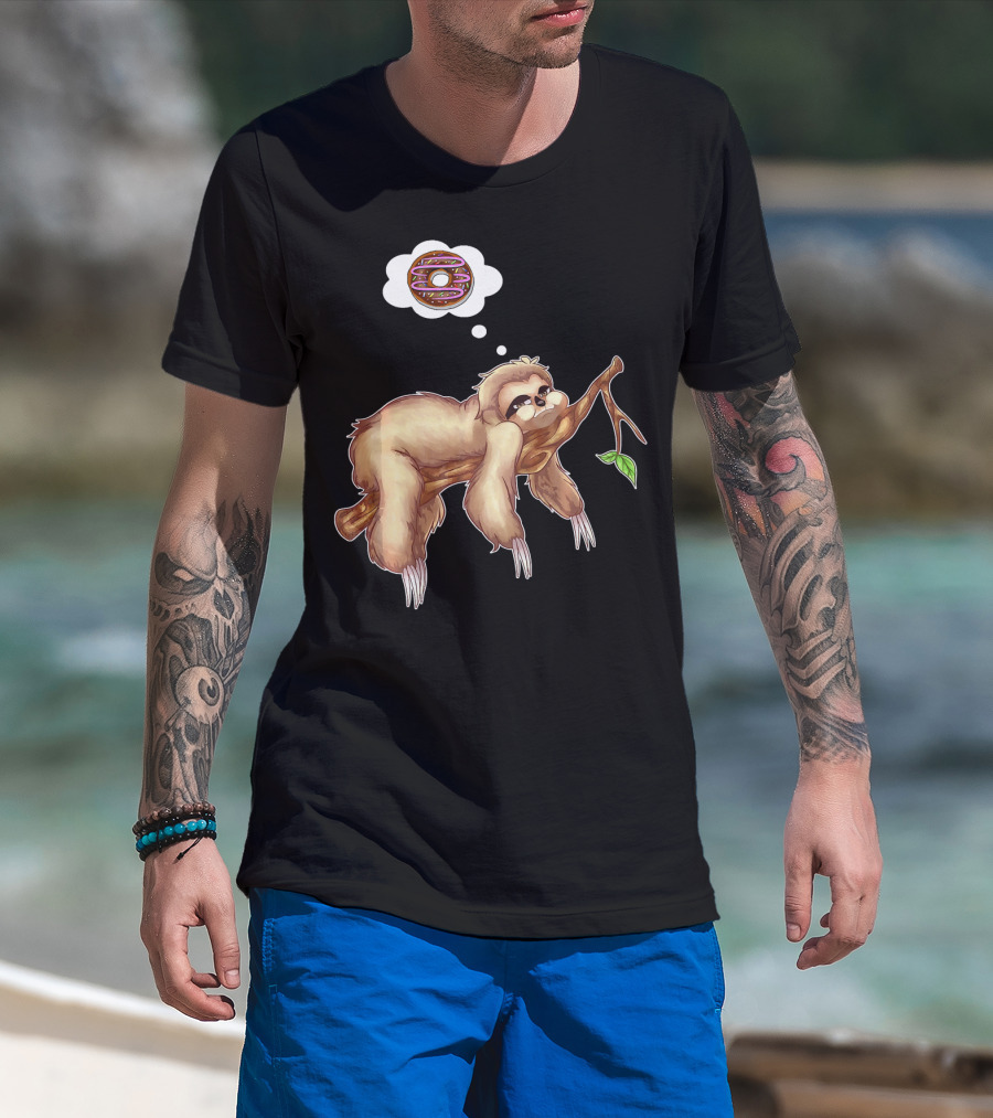 Lazy Sloth Dreaming Of Chocolate Donuts Sleepy Humor T-Shirt