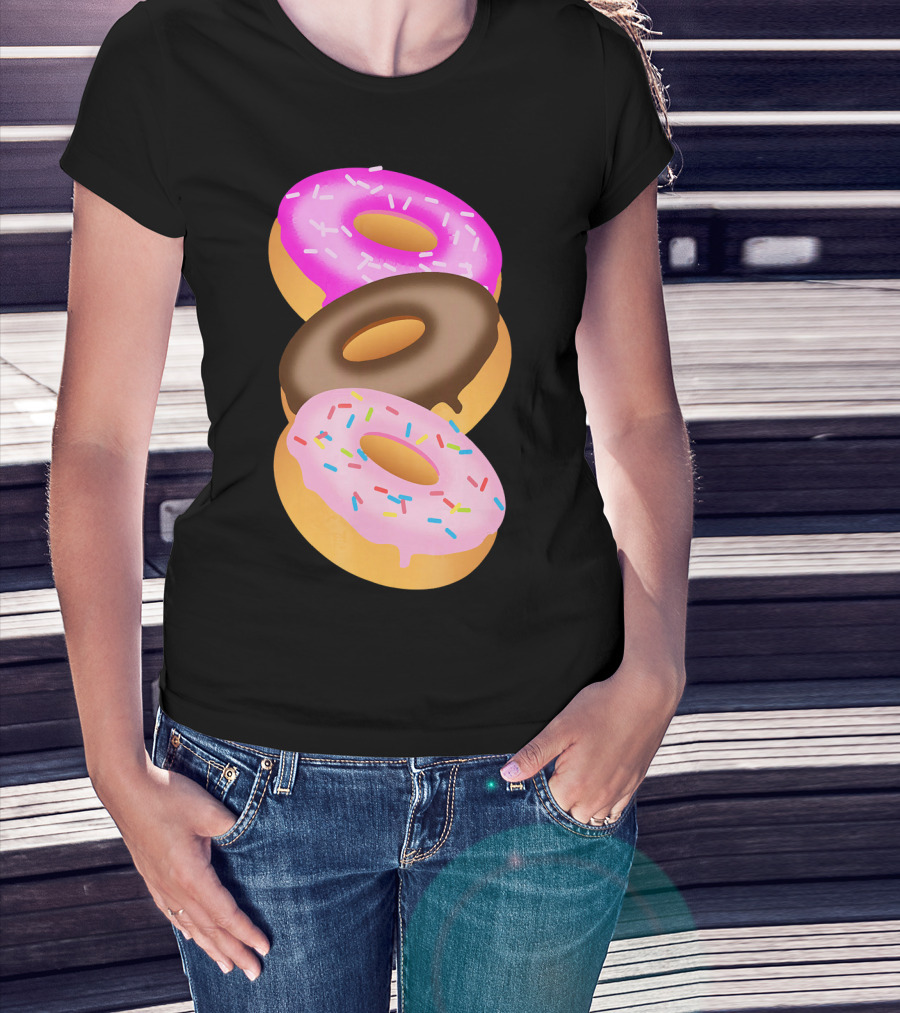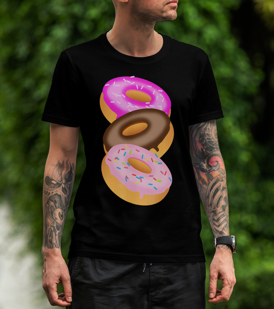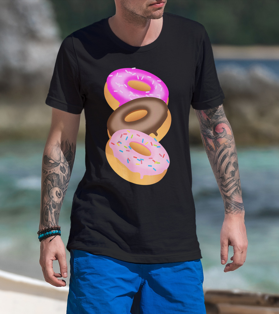 Donuts Doughnut Confection Pink Chocolate Frosted Doughnut Trio T-Shirt