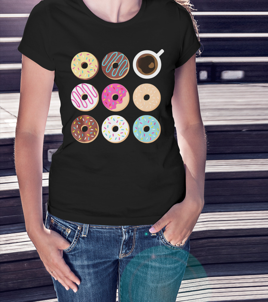 The Wake Up to Donuts and Coffee with Sprinkles and Icing T-shirt is designed for everyday wear and a consistent fit. Fabric is pre-shrunk ring-spun cotton with durable stitching. See the size chart below for exact measurements.