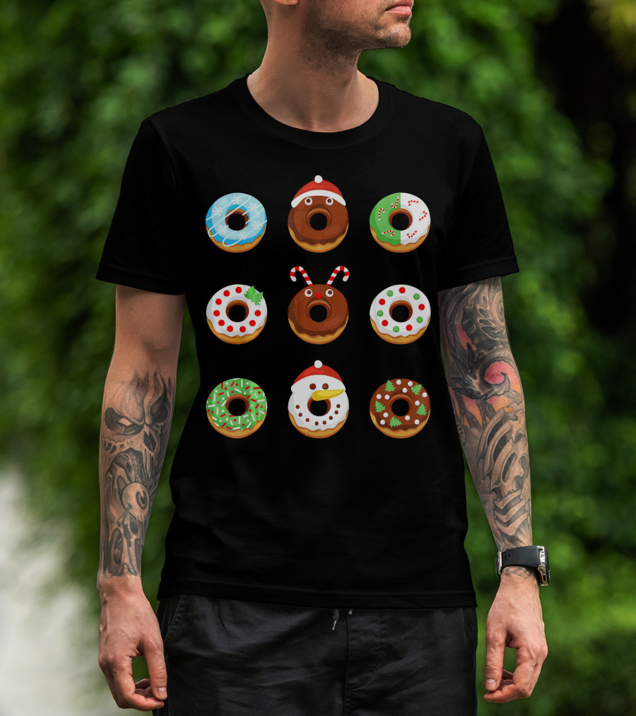 Christmas Donut Snowflakes Santa Candy Canes Holly Wreath Trees Snowman T-Shirt