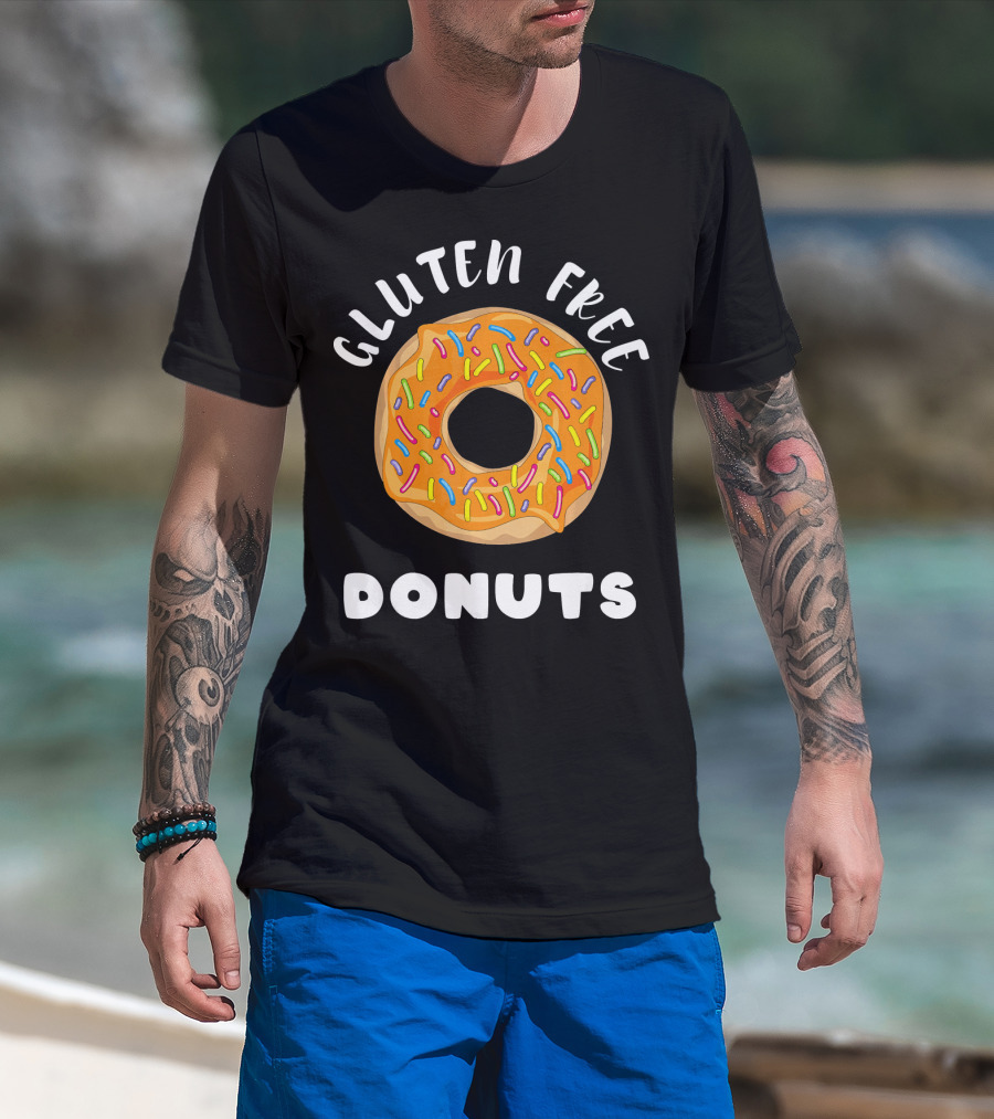 The Gluten Free Sprinkled Donuts T-shirt is designed for everyday wear and a consistent fit. Fabric is pre-shrunk ring-spun cotton with durable stitching. See the size chart below for exact measurements.