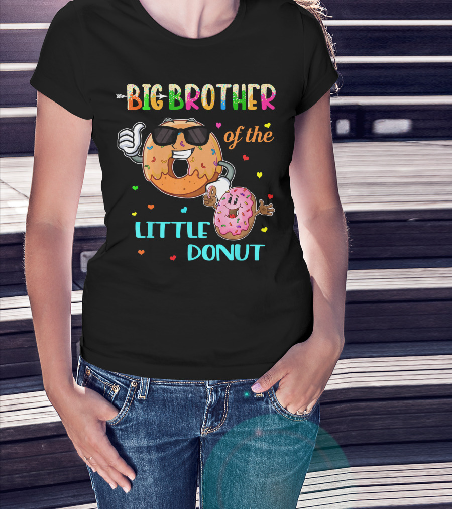 BIG BROTHER OF THE LITTLE DONUT WITH COLORFUL HEARTS AND CARTOON CHARACTERS T-Shirt