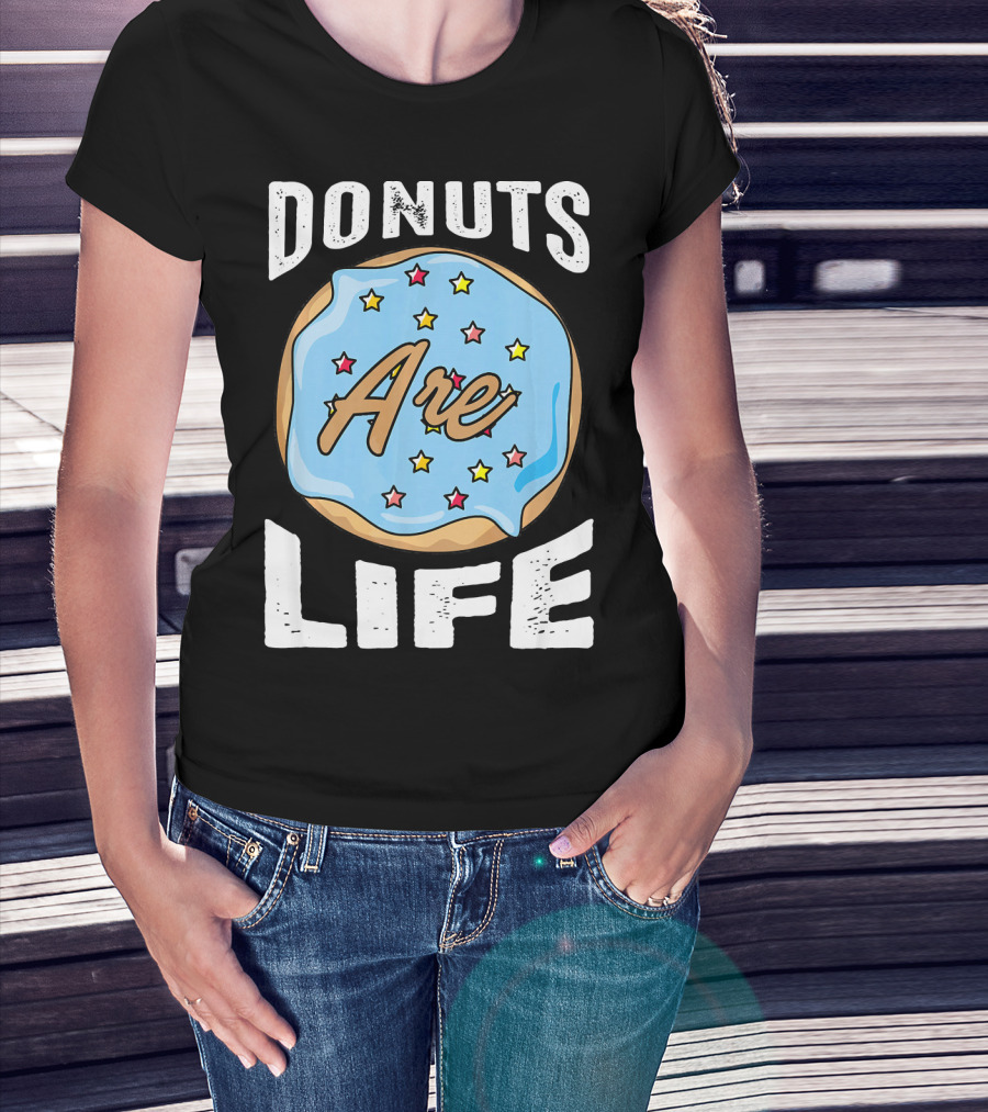 Donuts Are Life Blue Frosted Donut With Stars T-Shirt