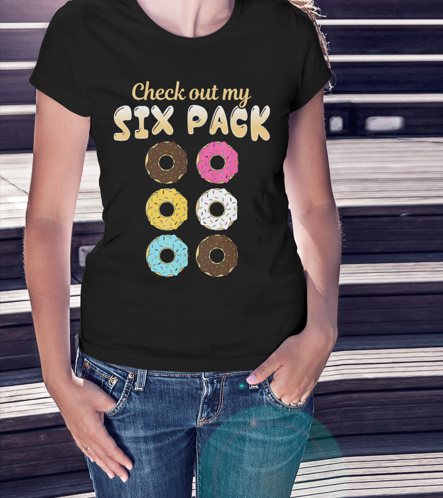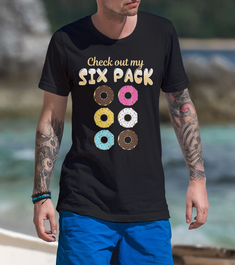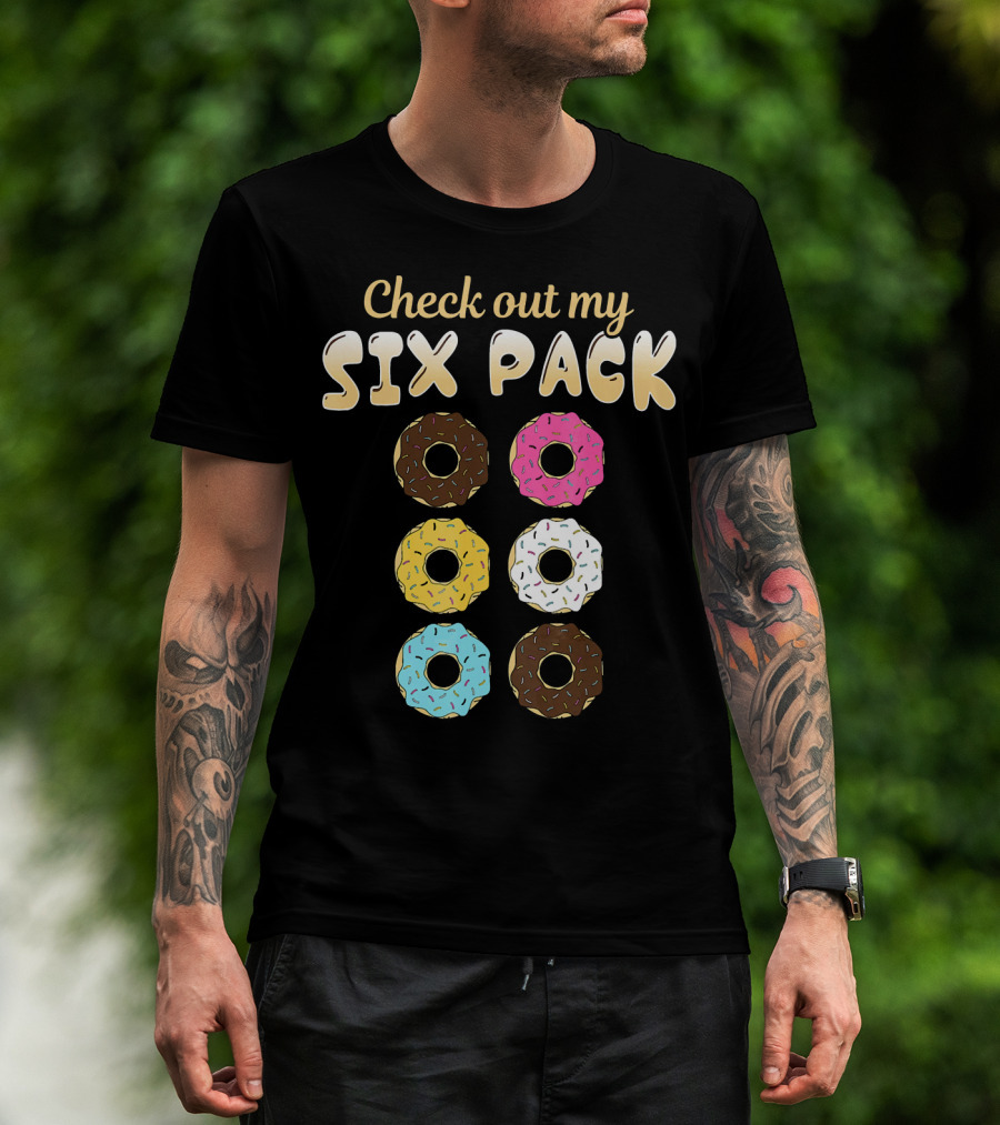 The Check Out My Six Pack Donut Lover T-shirt is designed for everyday wear and a consistent fit. Fabric is pre-shrunk ring-spun cotton with durable stitching. See the size chart below for exact measurements.