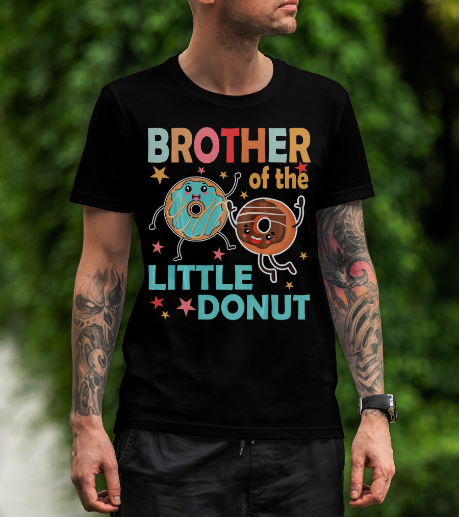 BROTHER OF THE LITTLE DONUT Cute Cartoon Characters With Stars And Sprinkles T-Shirt