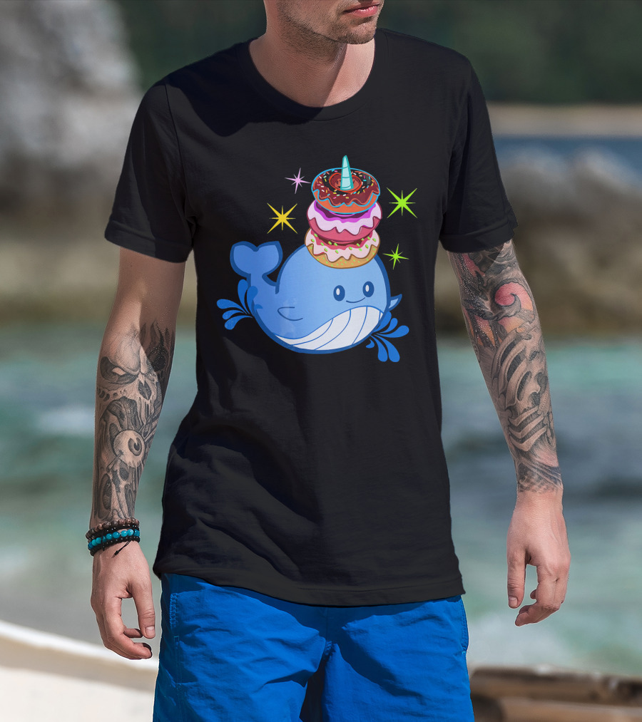 Cute Narwhal Balancing Colorful Donuts T-Shirt