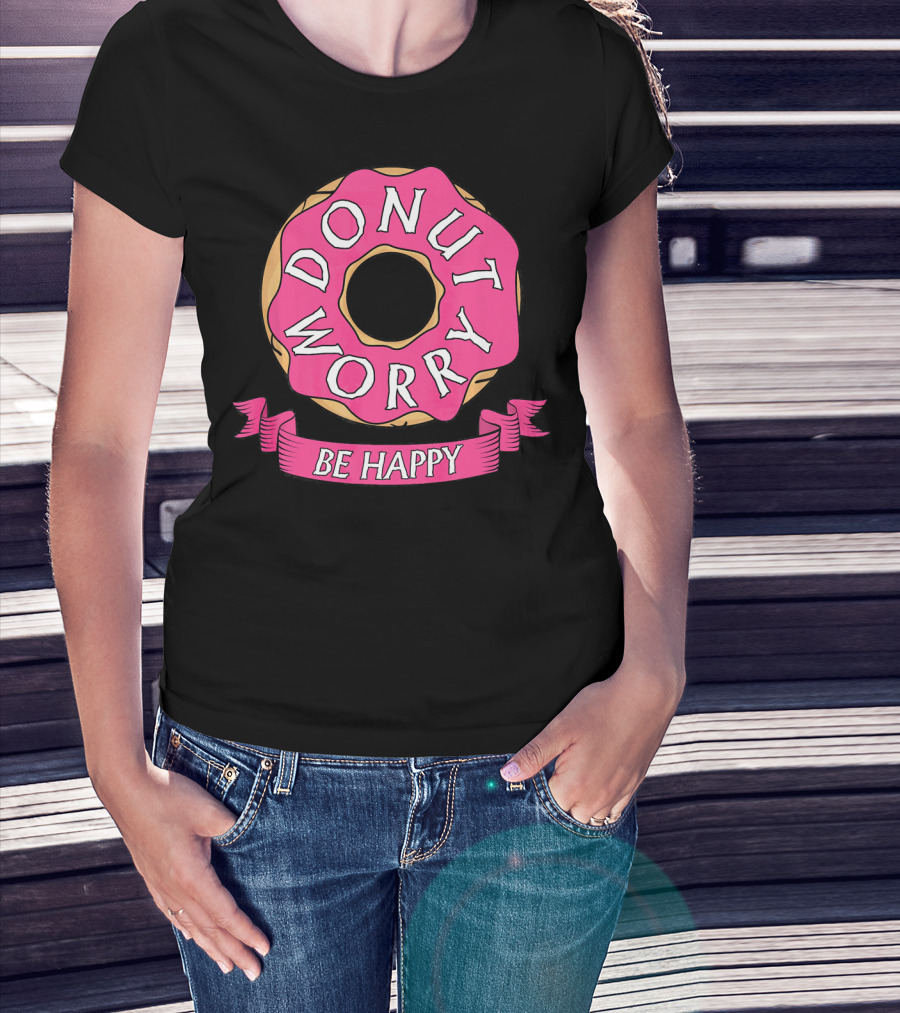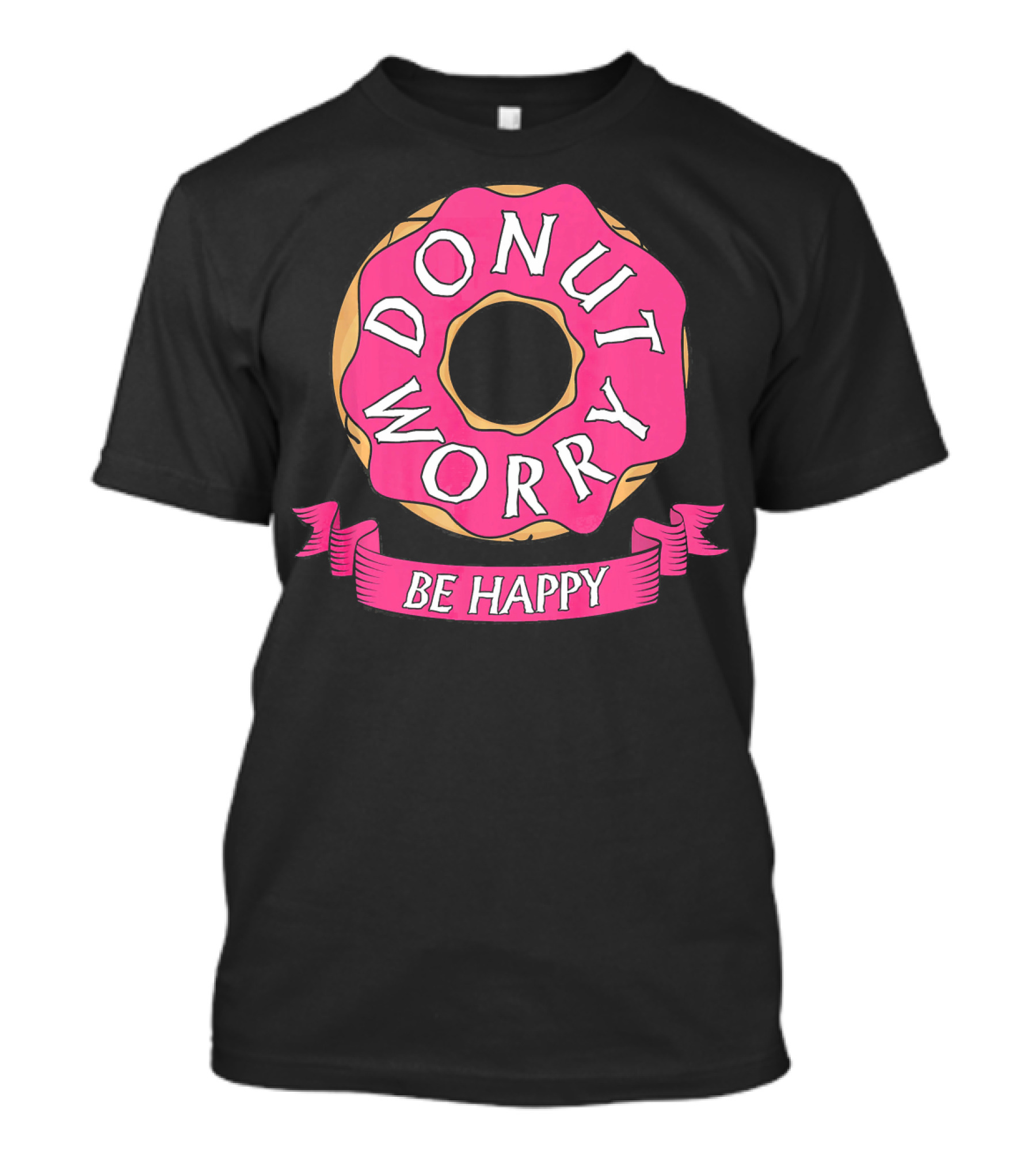 The DONUT WORRY BE HAPPY T-shirt is designed for everyday wear and a consistent fit. Fabric is pre-shrunk ring-spun cotton with durable stitching. See the size chart below for exact measurements.