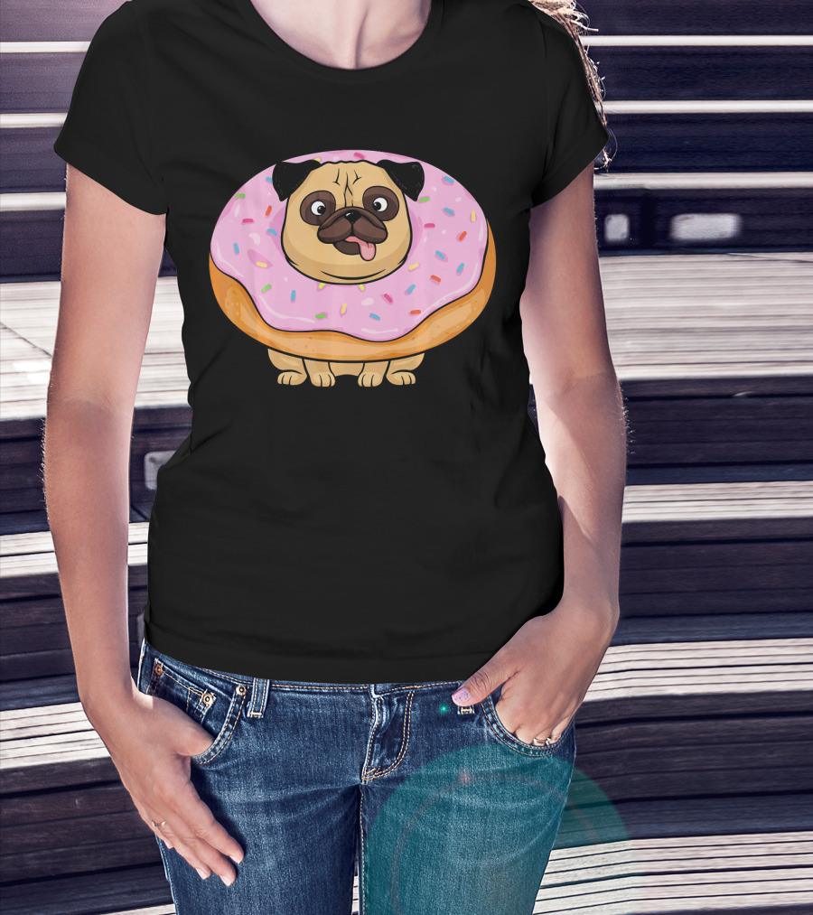 The Cute Doughnut Pug Wearing A Donut Costume Sprinkles T-shirt is designed for everyday wear and a consistent fit. Fabric is pre-shrunk ring-spun cotton with durable stitching. See the size chart below for exact measurements.