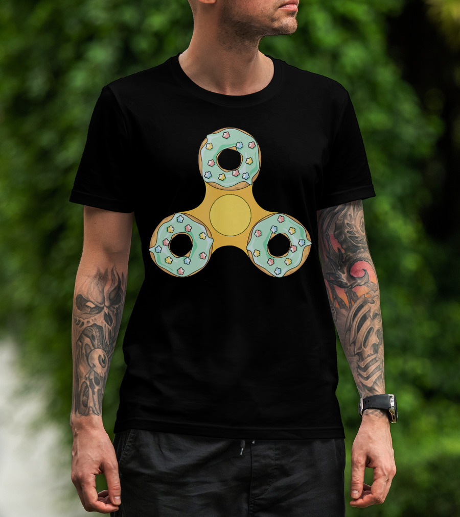 The Fidget Spinner Donut Design with Sprinkles T-shirt is designed for everyday wear and a consistent fit. Fabric is pre-shrunk ring-spun cotton with durable stitching. See the size chart below for exact measurements.