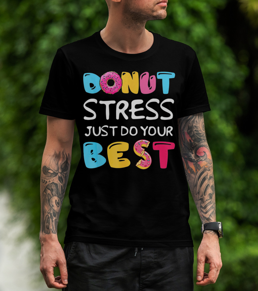 Donut Stress Just Do Your Best Colorful Teacher Motivation T-Shirt