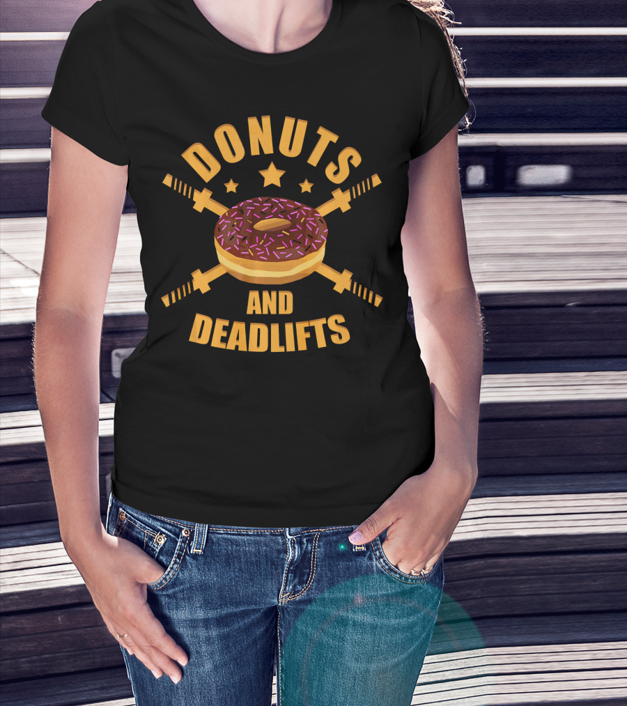 Donuts And Deadlifts Funny Workout Doughnut With Barbell Crossed T-Shirt