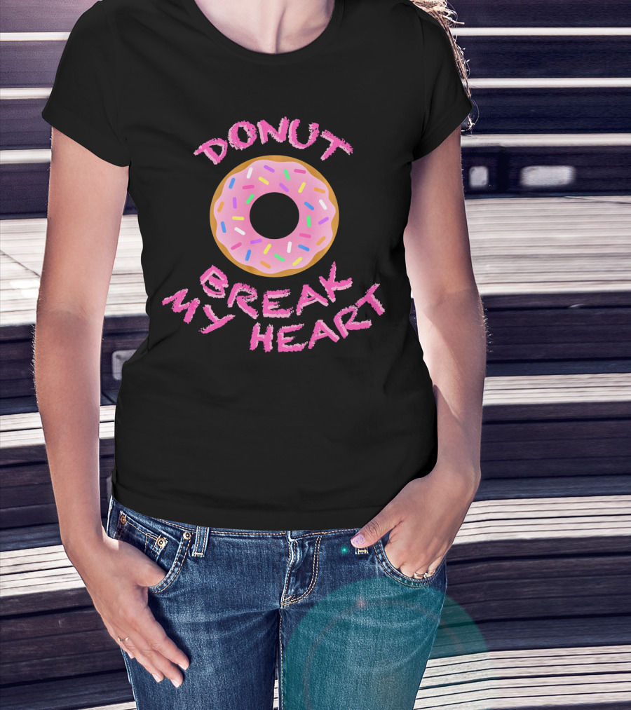 The Donut Break My Heart Sprinkles T-shirt is designed for everyday wear and a consistent fit. Fabric is pre-shrunk ring-spun cotton with durable stitching. See the size chart below for exact measurements.