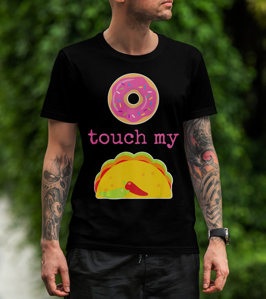 The Funny Donut Touch My Taco Donut Sprinkles Taco Peppers T-shirt is designed for everyday wear and a consistent fit. Fabric is pre-shrunk ring-spun cotton with durable stitching. See the size chart below for exact measurements.