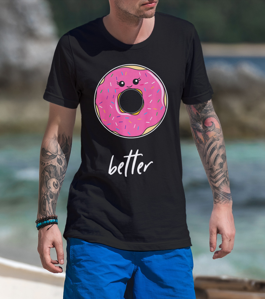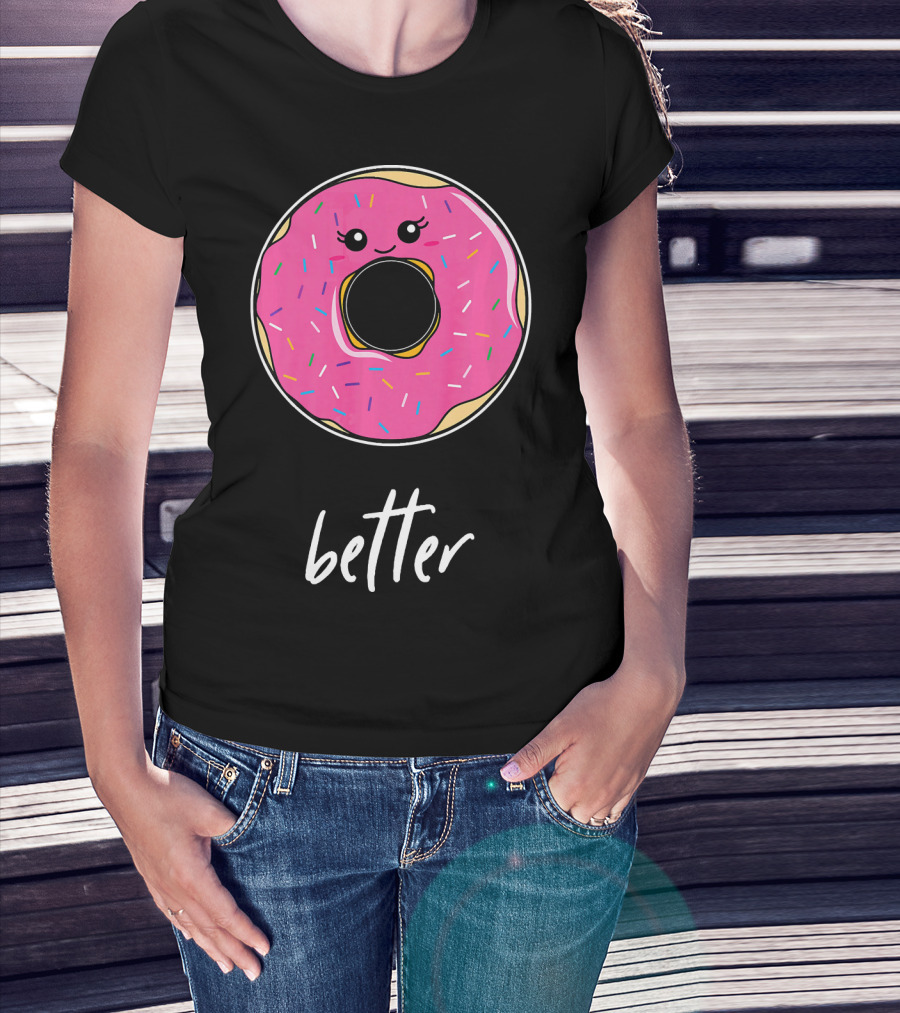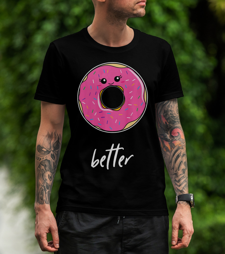 The Donut Better Coffee Matching Couple T-shirt is designed for everyday wear and a consistent fit. Fabric is pre-shrunk ring-spun cotton with durable stitching. See the size chart below for exact measurements.