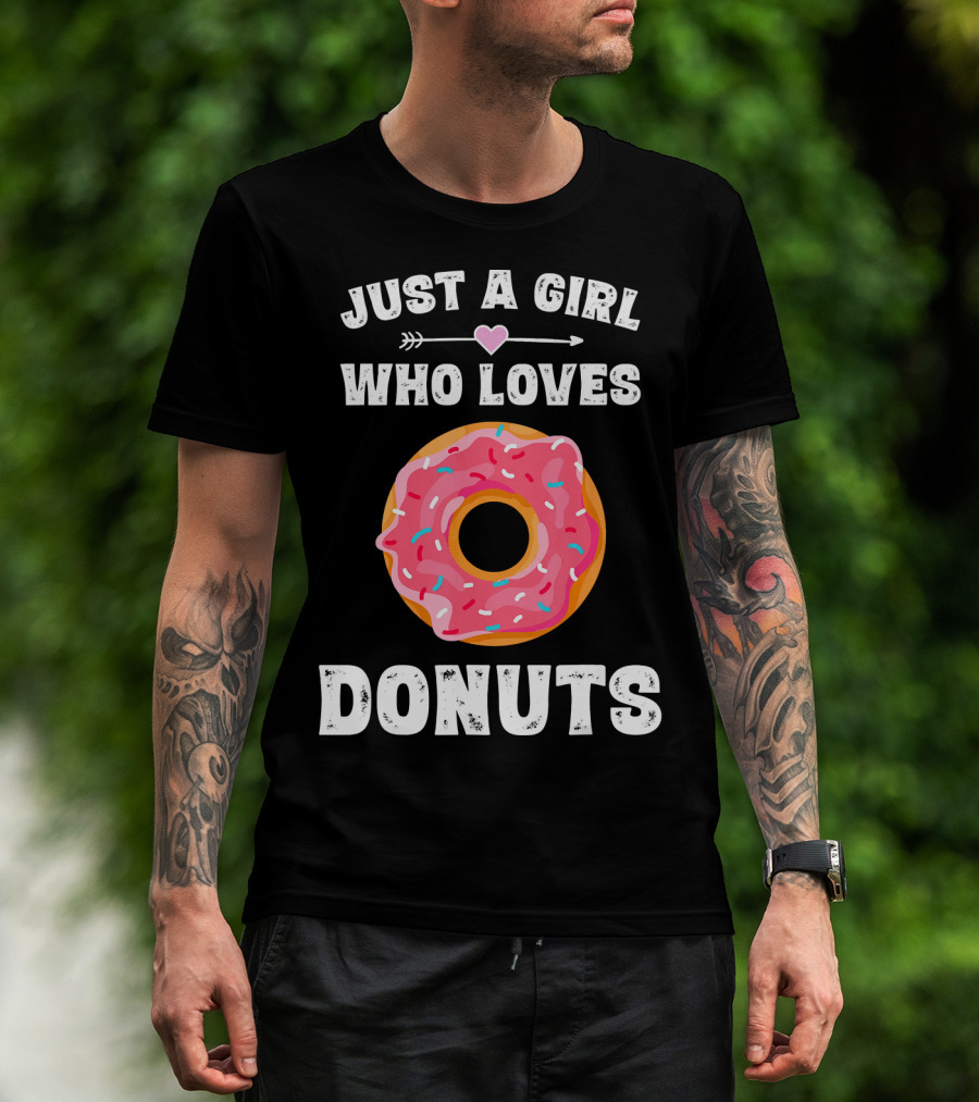 The Just a Girl Who Loves Donuts T-shirt is designed for everyday wear and a consistent fit. Fabric is pre-shrunk ring-spun cotton with durable stitching. See the size chart below for exact measurements.