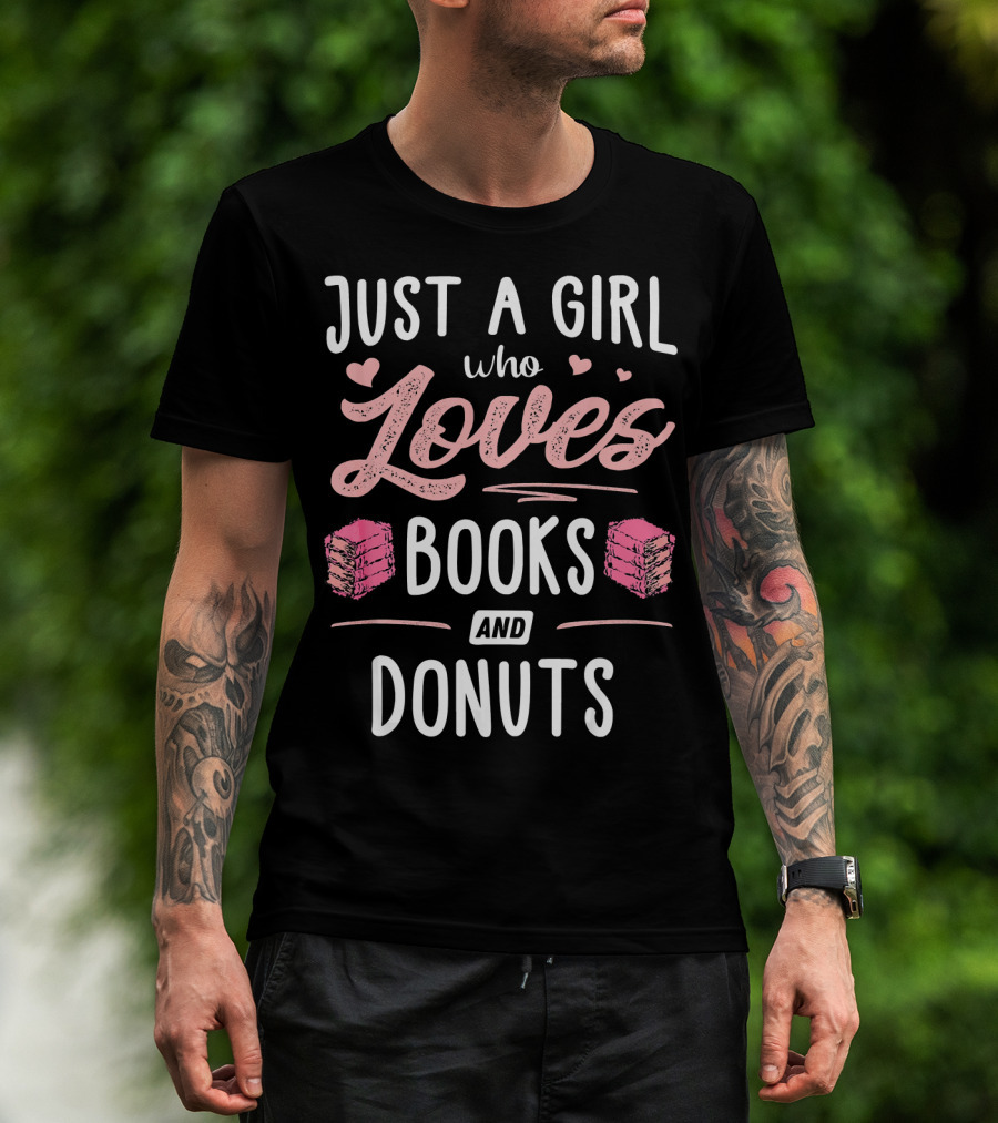 Just A Girl Who Loves Books And Donuts Cute Pink Heart T-Shirt