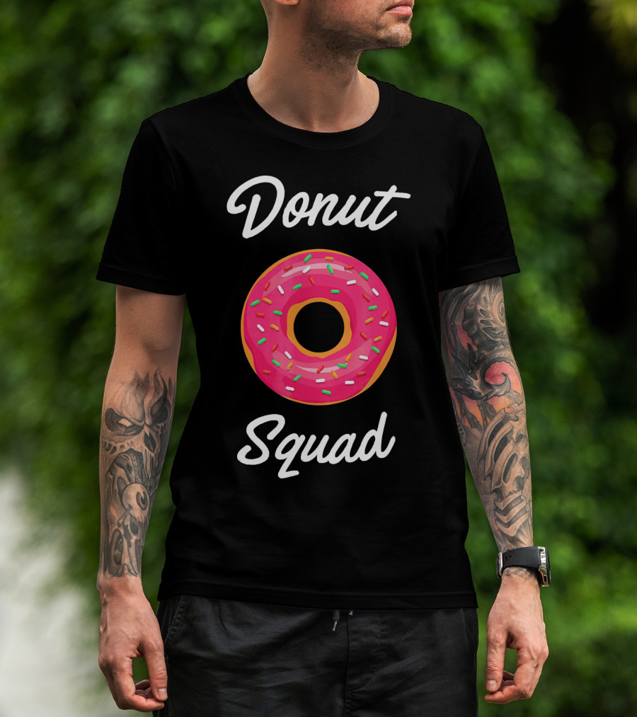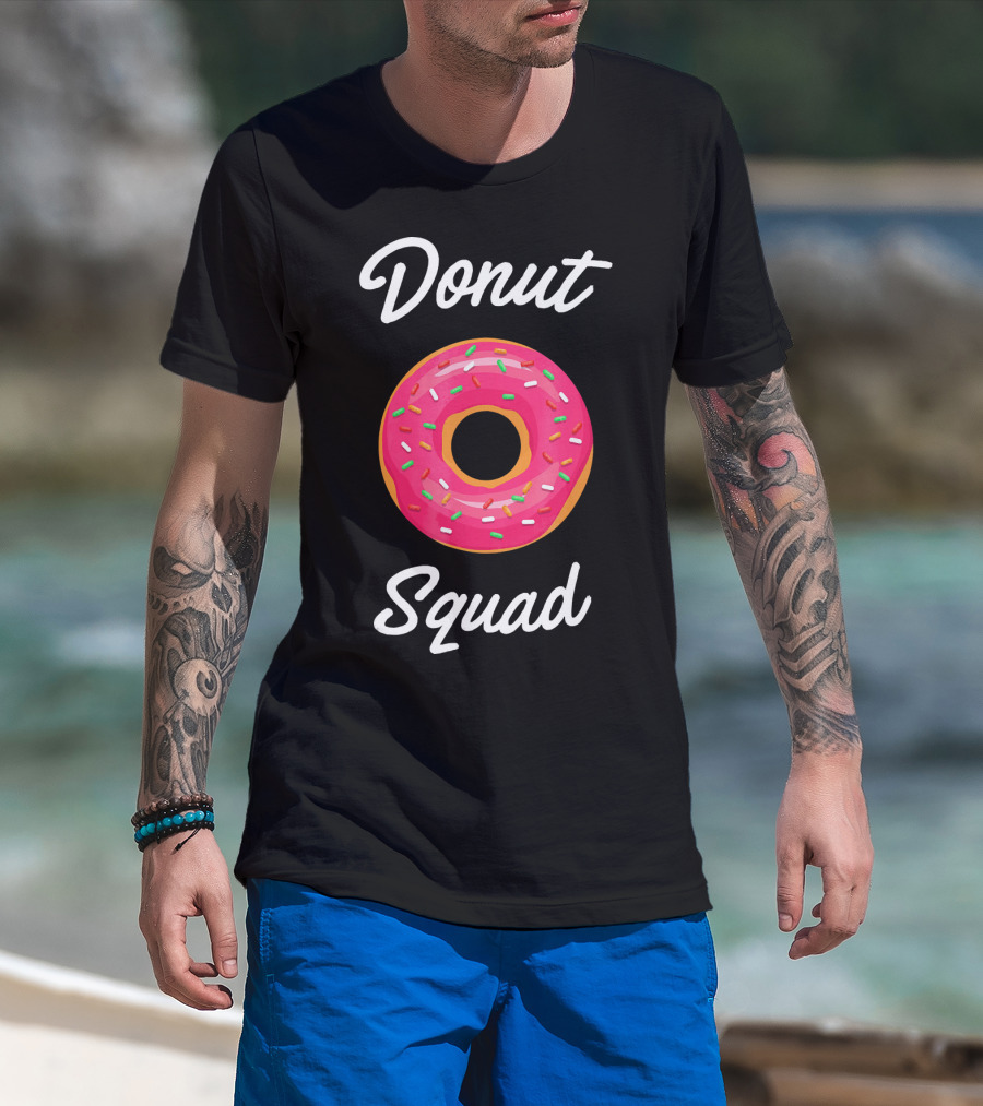 The Donut Squad Pink Sprinkles T-shirt is designed for everyday wear and a consistent fit. Fabric is pre-shrunk ring-spun cotton with durable stitching. See the size chart below for exact measurements.