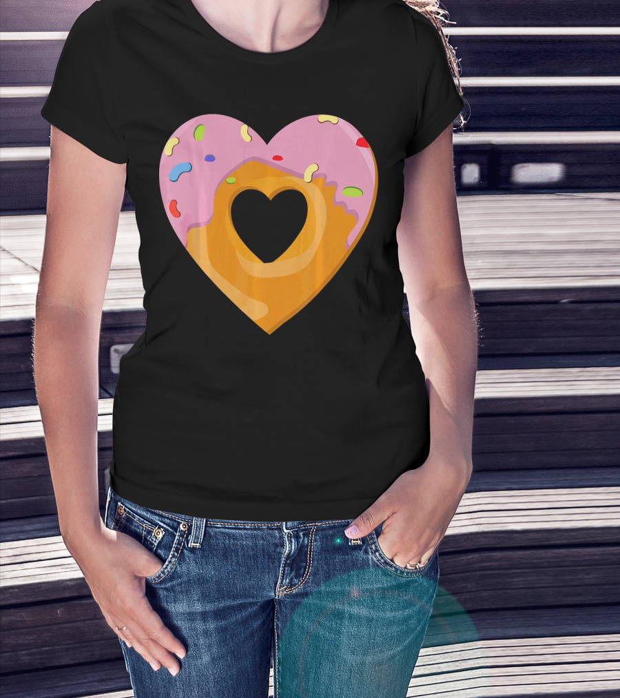The Donut Heart Cute Donut Heart WomenYouth Va T-shirt is designed for everyday wear and a consistent fit. Fabric is pre-shrunk ring-spun cotton with durable stitching. See the size chart below for exact measurements.