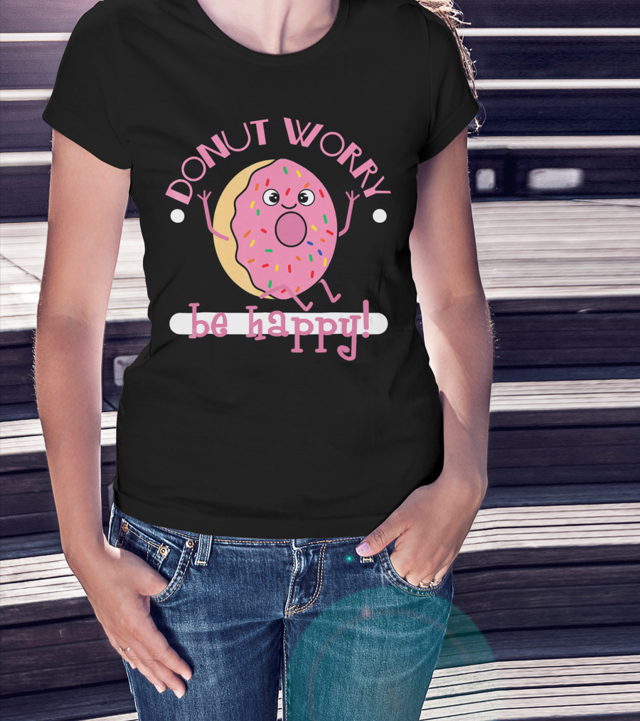 Donut Worry Be Happy Funny Cooking Novel Silly Sprinkles Doughnut T-Shirt