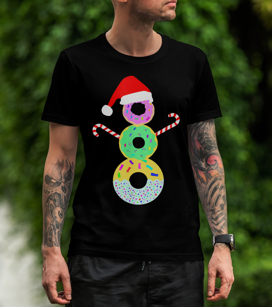 Snowman Donuts Doughnut Confections Christmas Candy Canes Santa Hat T-Shirt