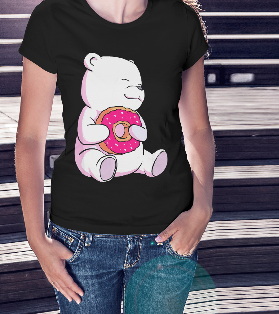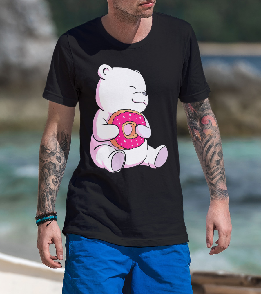 Polar Bear Holding Donut Animal Lover T-Shirt