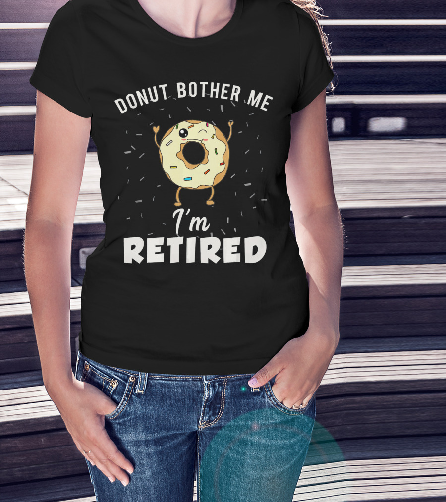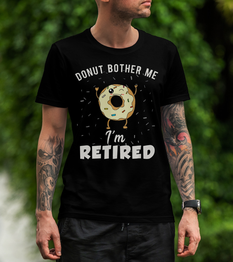 The Donut Bother Me I'm Retired Funny Donut Joke Gag T-shirt is designed for everyday wear and a consistent fit. Fabric is pre-shrunk ring-spun cotton with durable stitching. See the size chart below for exact measurements.