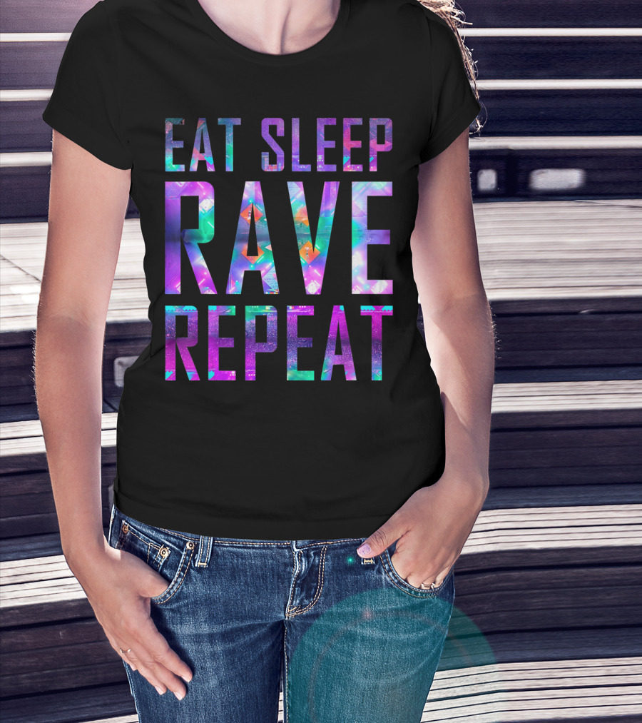 EAT SLEEP RAVE REPEAT For Partys Colorful Neon Text T-Shirt