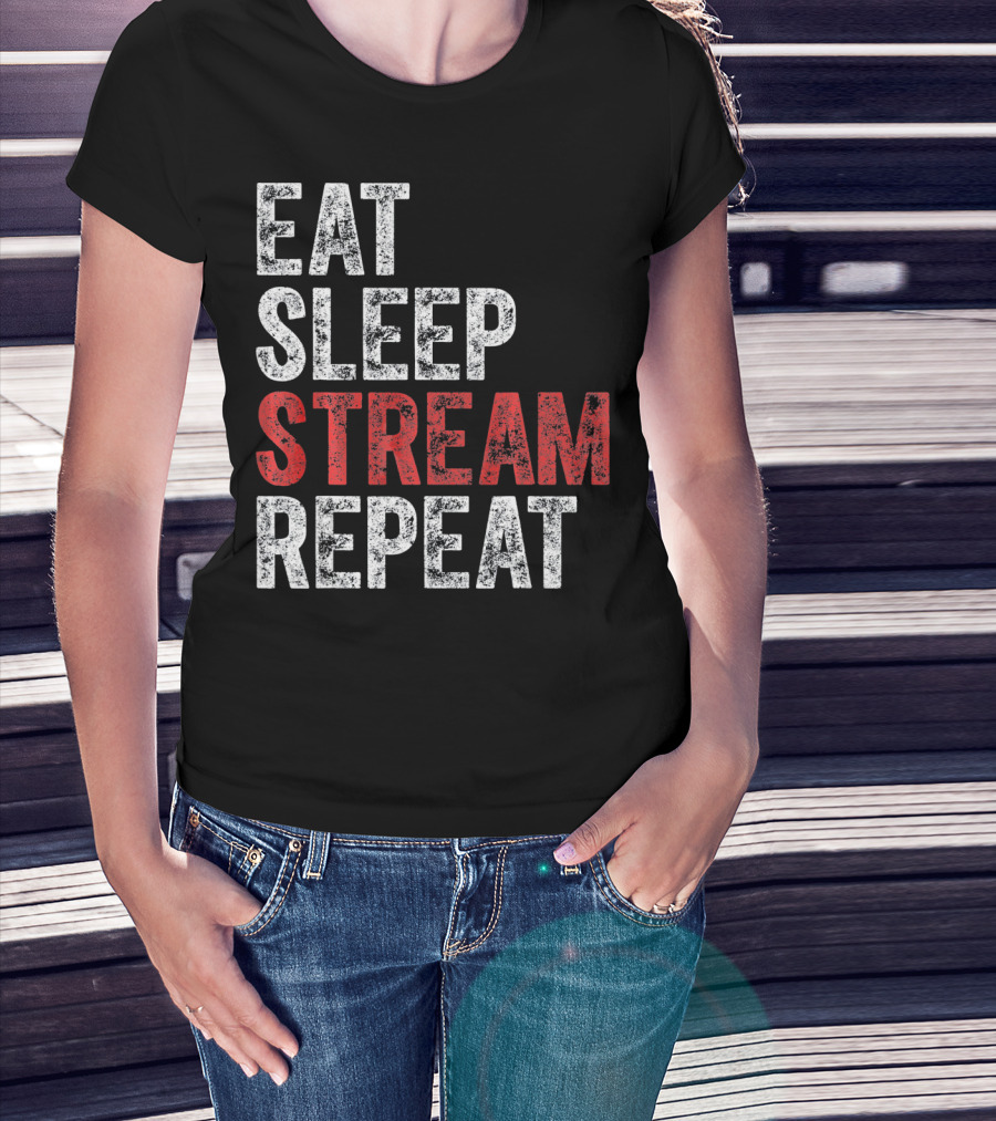 Eat Sleep Stream Repeat Bold Minimalist Gaming Lifestyle T-Shirt