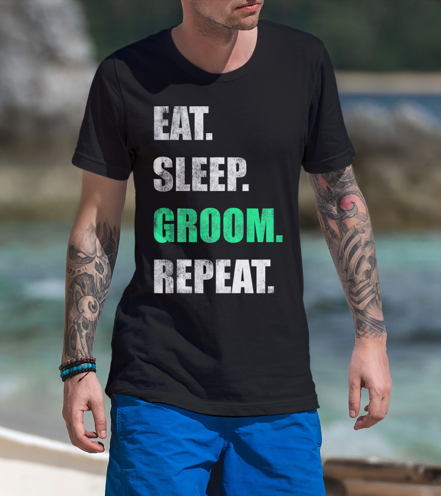 Eat Sleep Groom Repeat Dog Pet Routine T-Shirt
