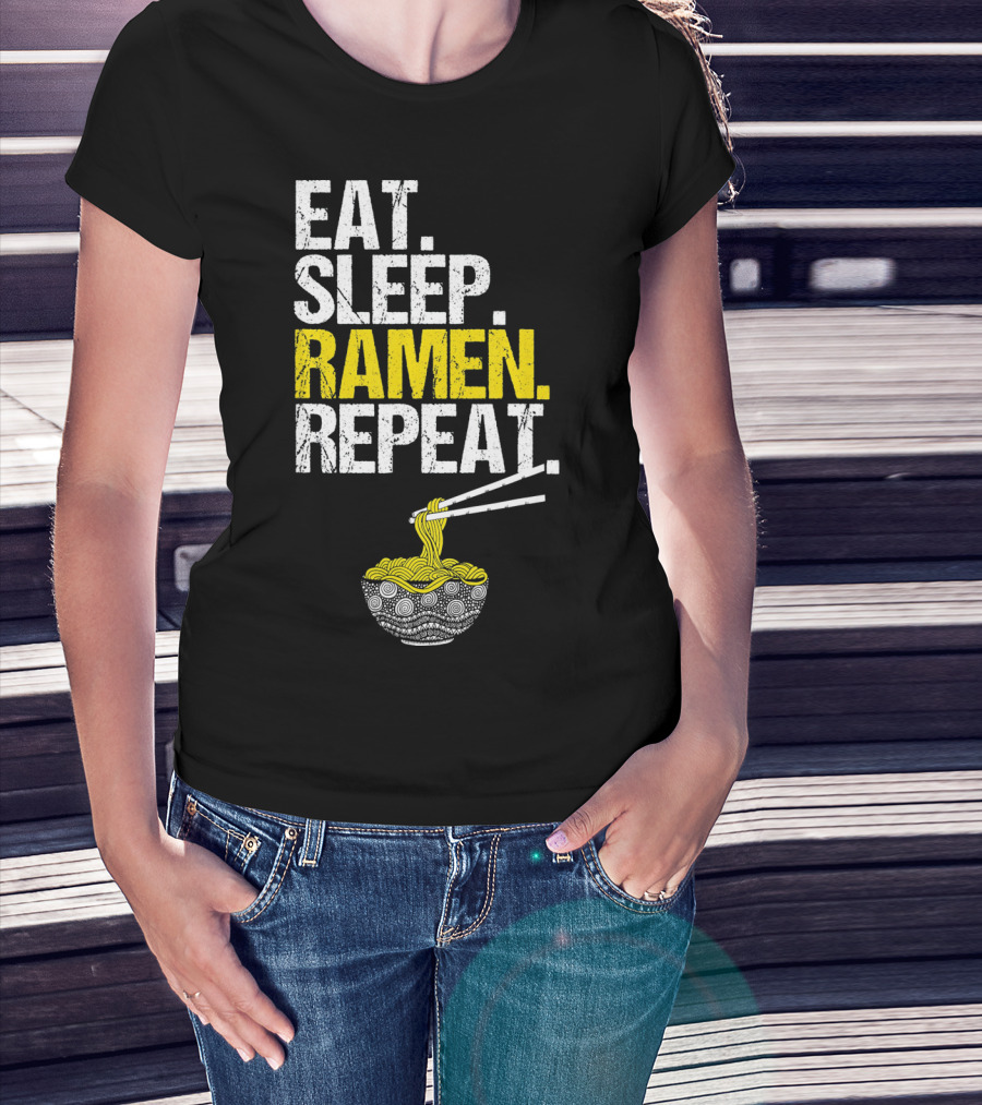 Eat Sleep Ramen Repeat Funny Ram Noodles Chopsticks Bowl T-Shirt