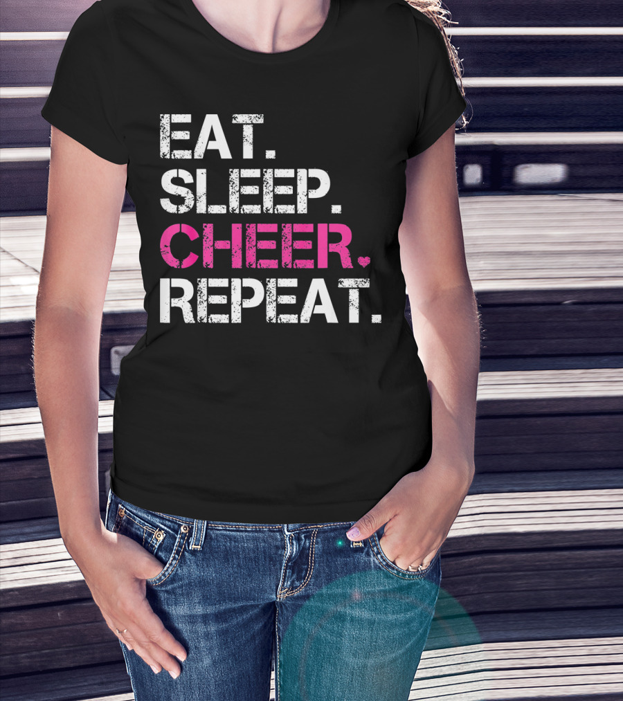 Eat Sleep Cheer Heart Repeat Cheerleading T-Shirt