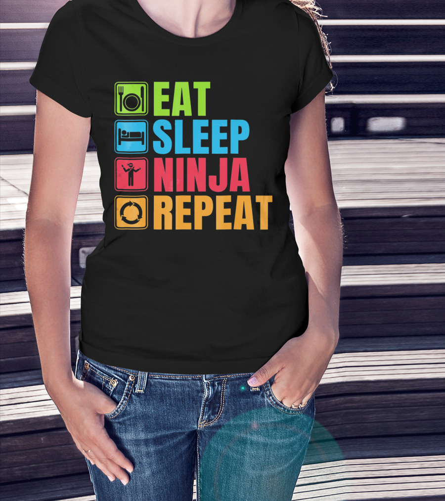 Eat Sleep Ninja Repeat Ninja Martial Arts Cycle T-Shirt