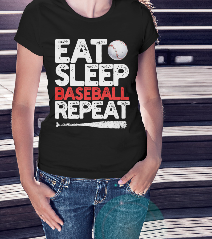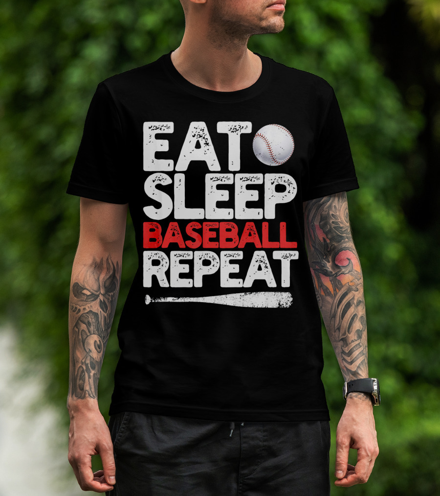 Eat Sleep Baseball Repeat Baseball Bat And Ball T-Shirt
