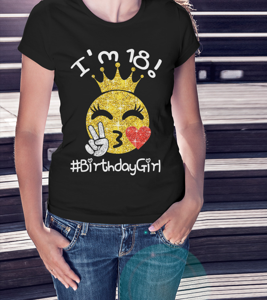 I'm 18 Glitter Crown Peace Emoji #BirthdayGirl T-Shirt