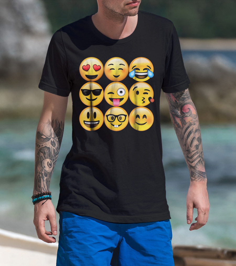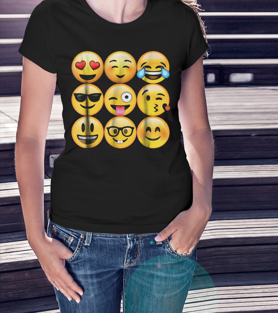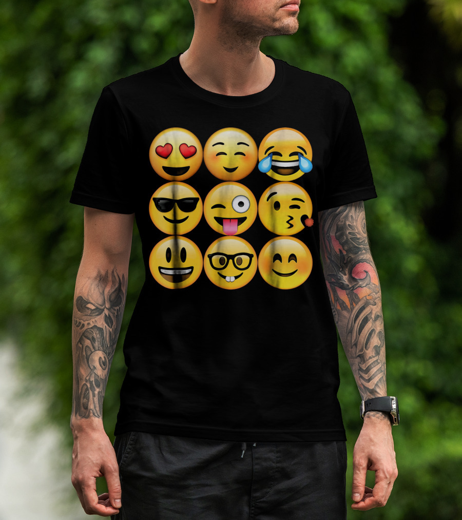 Emoji Heart Eyes Cool Tongue Wink Glasses Smiley Faces T-Shirt