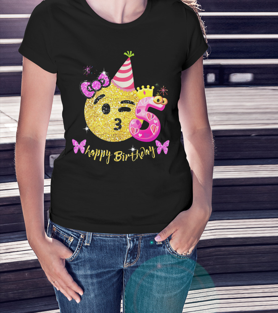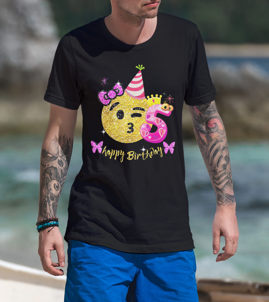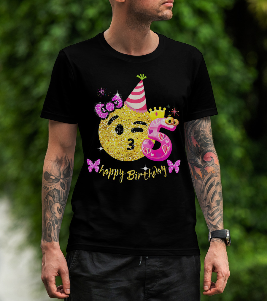 Happy Birthday Five Years Emoji Glitter T-Shirt