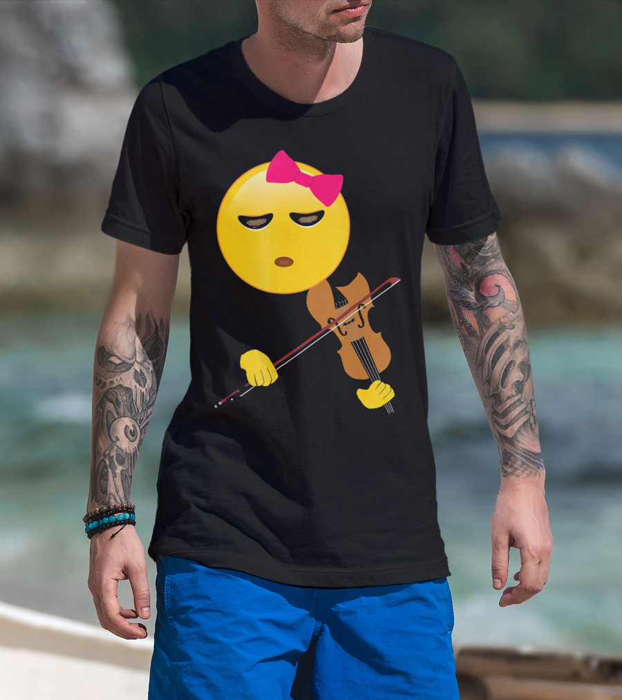 The Girl Emoji Violin with Pink Bow T-shirt is designed for everyday wear and a consistent fit. Fabric is pre-shrunk ring-spun cotton with durable stitching. See the size chart below for exact measurements.
